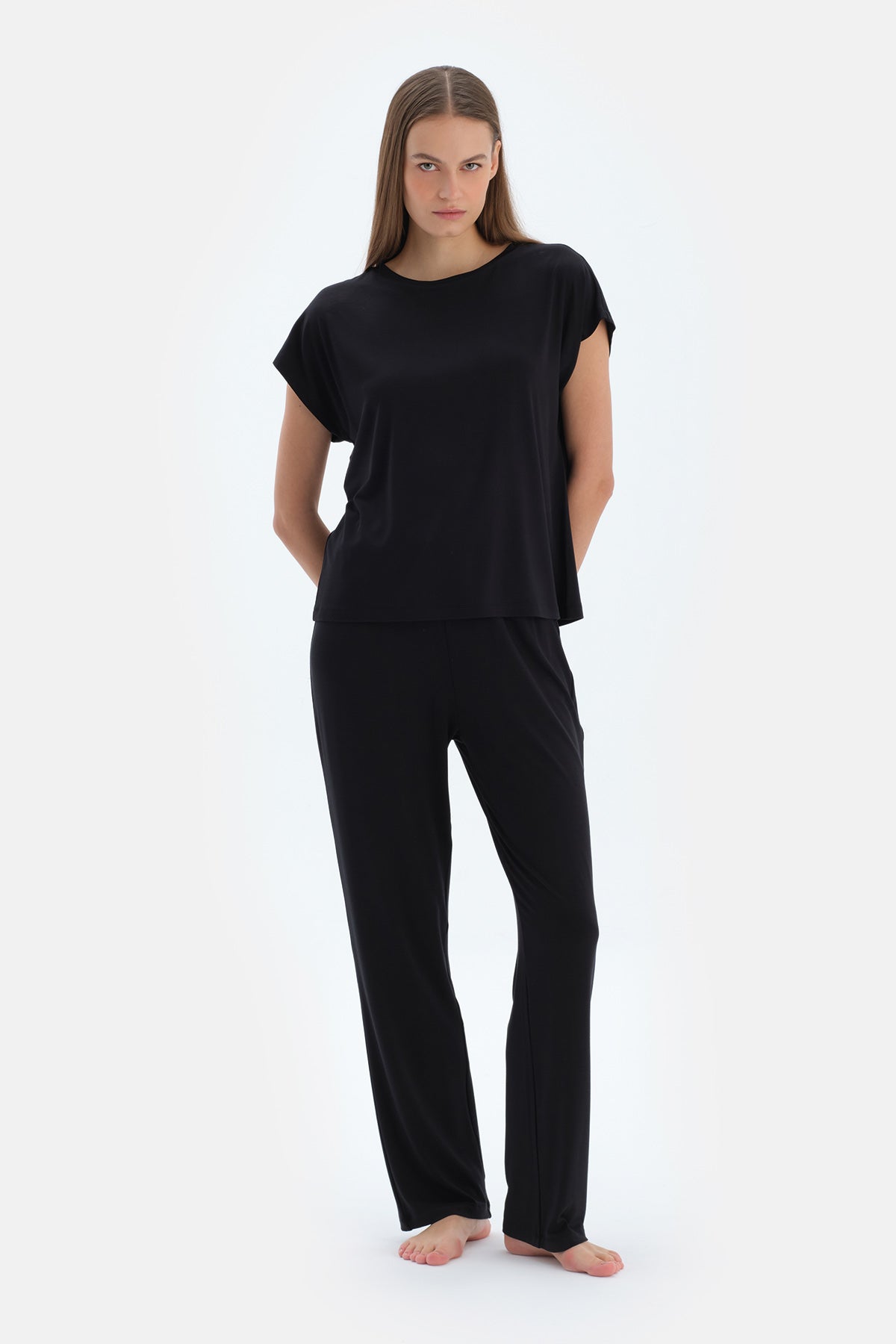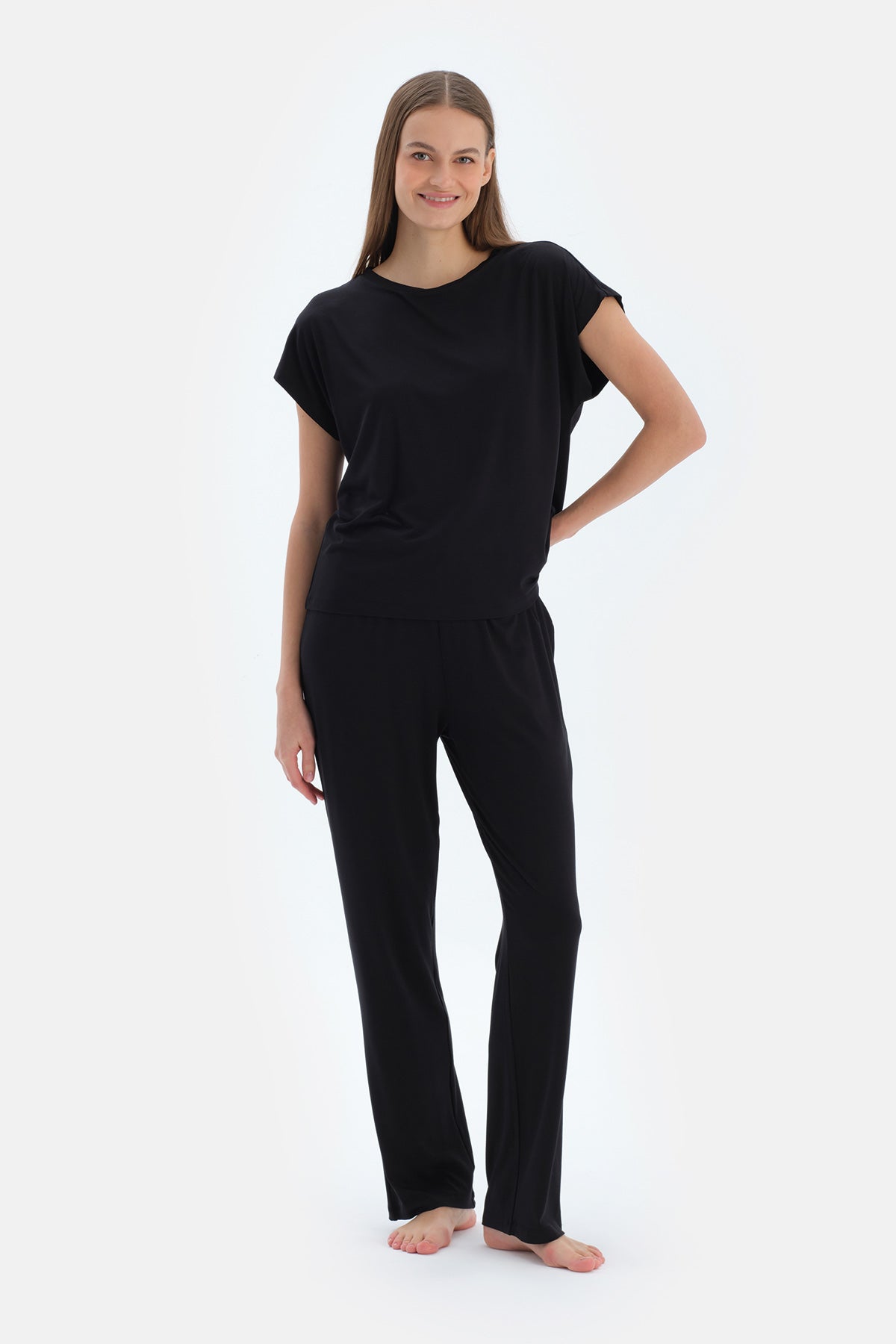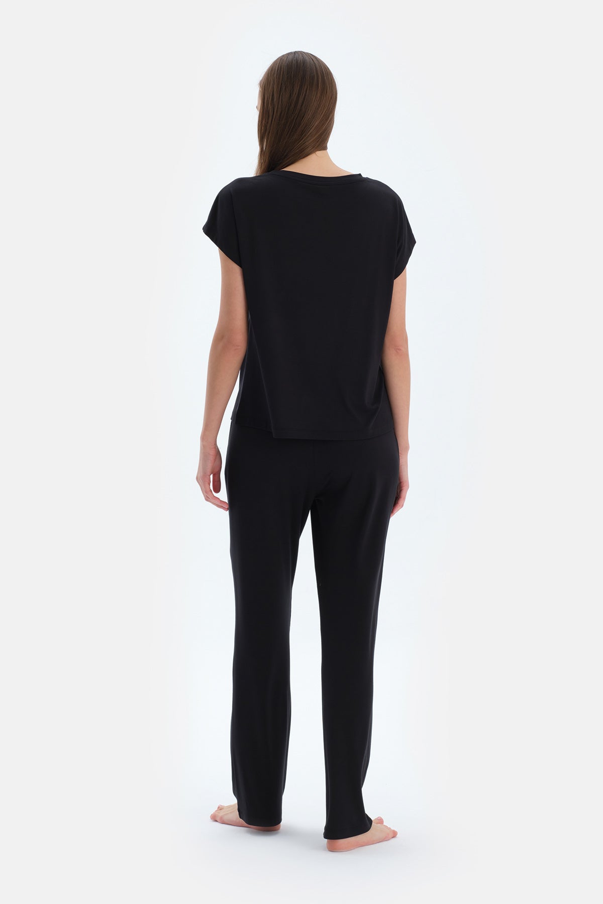 Siyah Basıc Kısa Kollu Tişört Pantolon Pijama Takımı