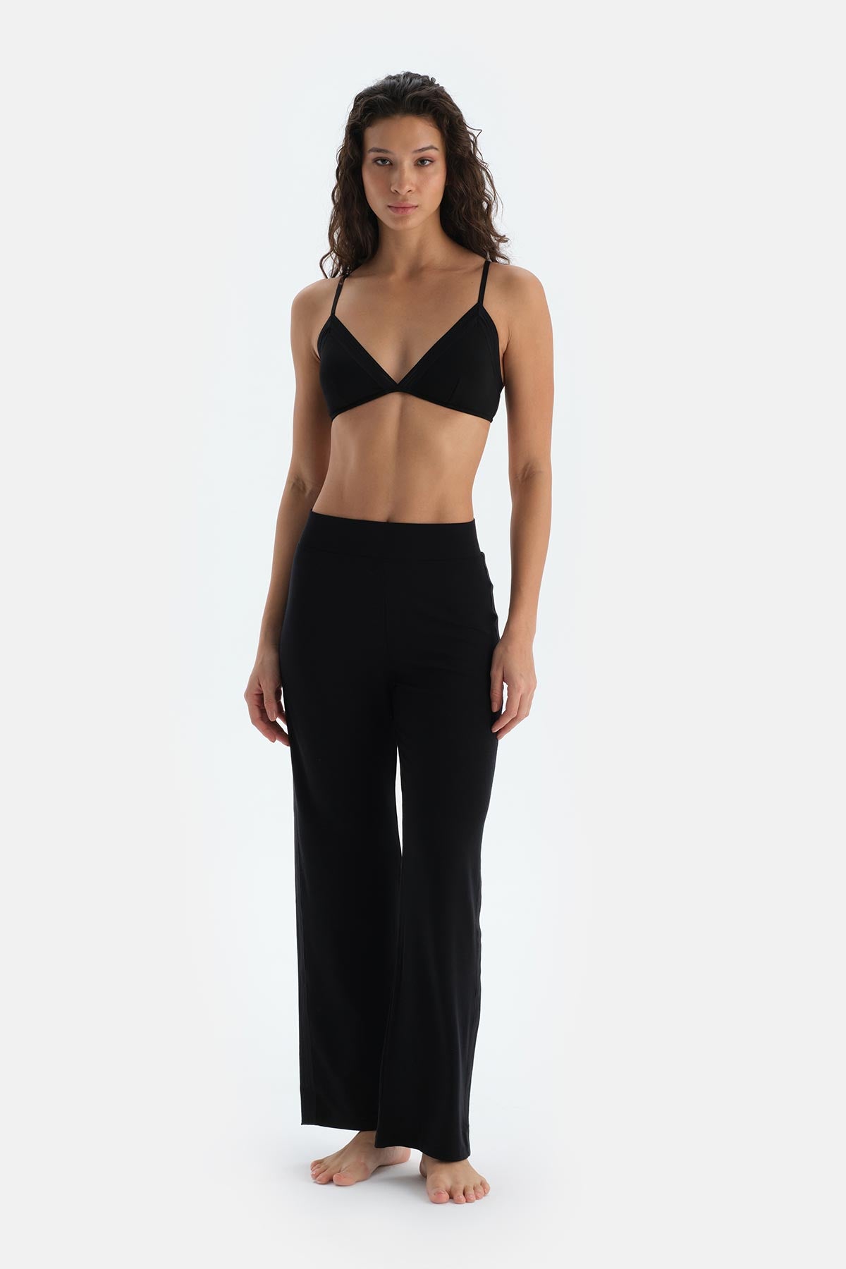 Siyah Basıc Yanı Şerit Dantel Detaylı Pantolon