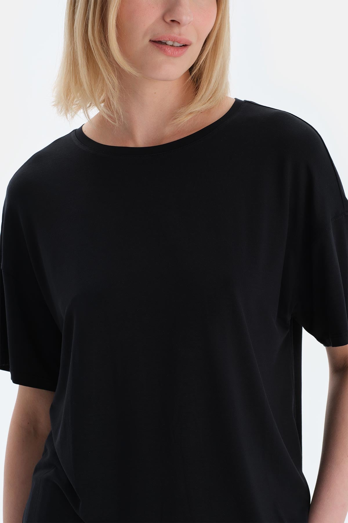 Siyah Bisiklet Yaka Kısa Kollu Modal Tişört