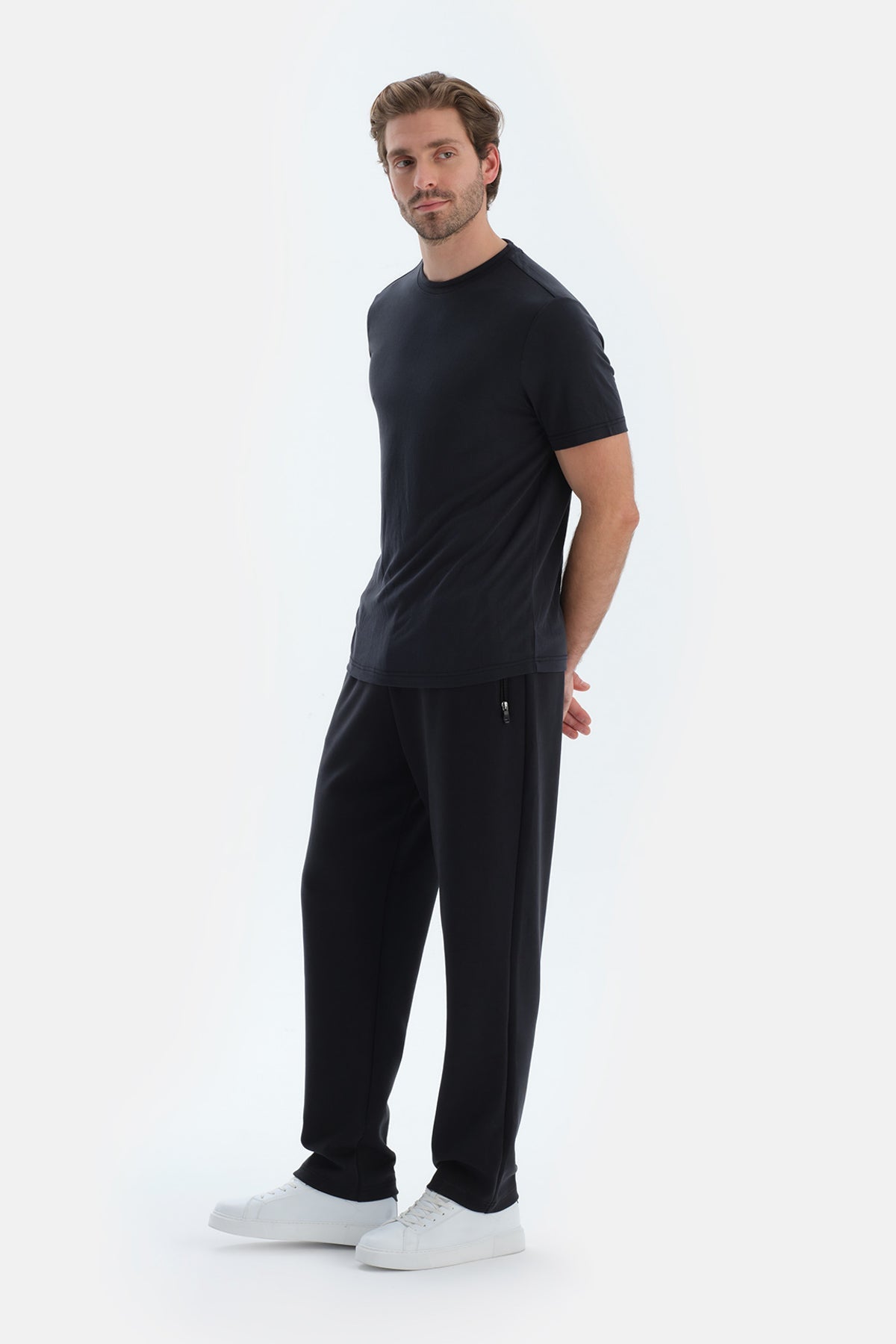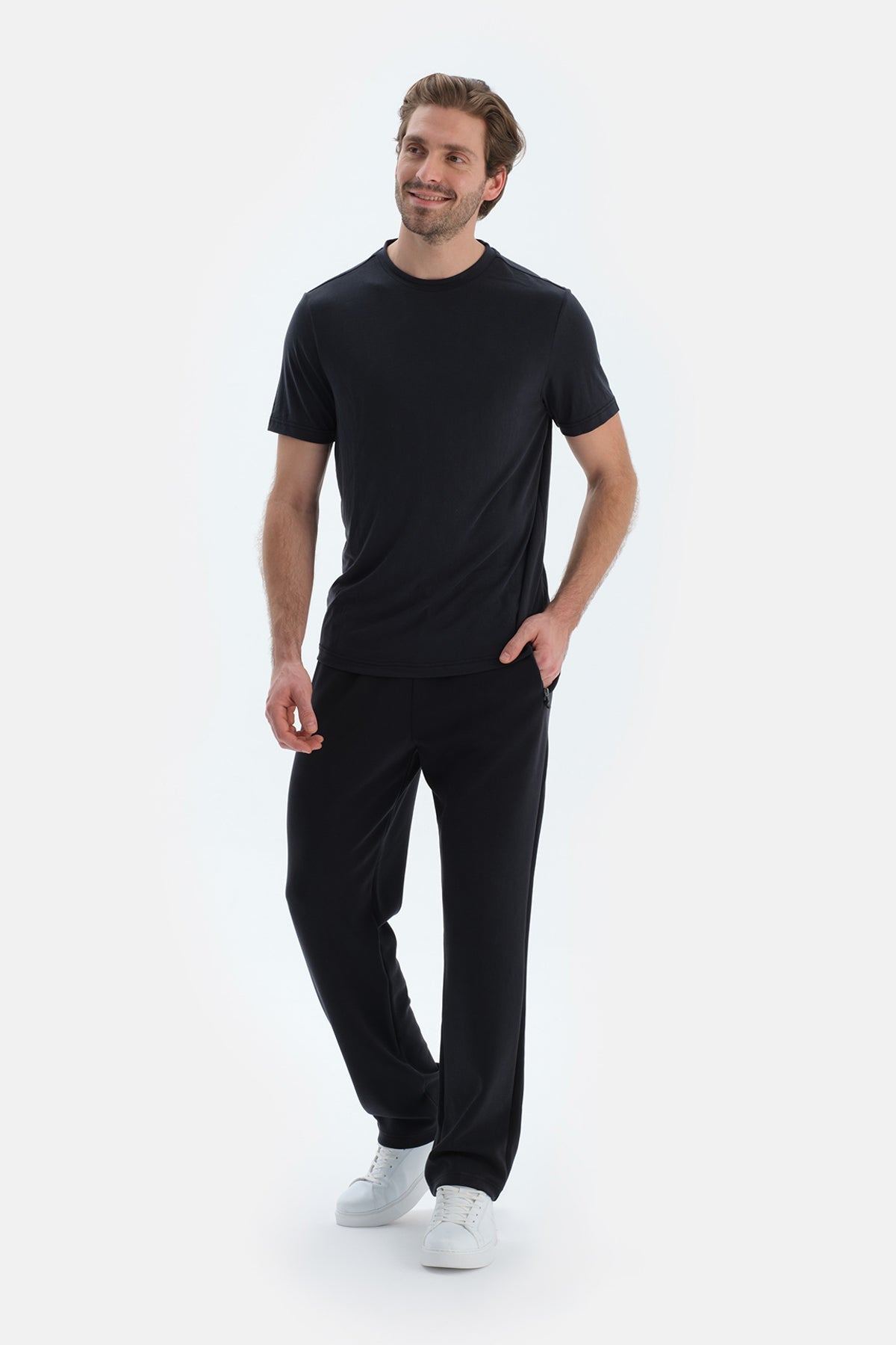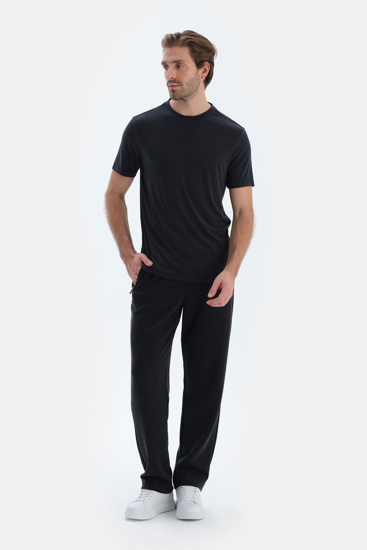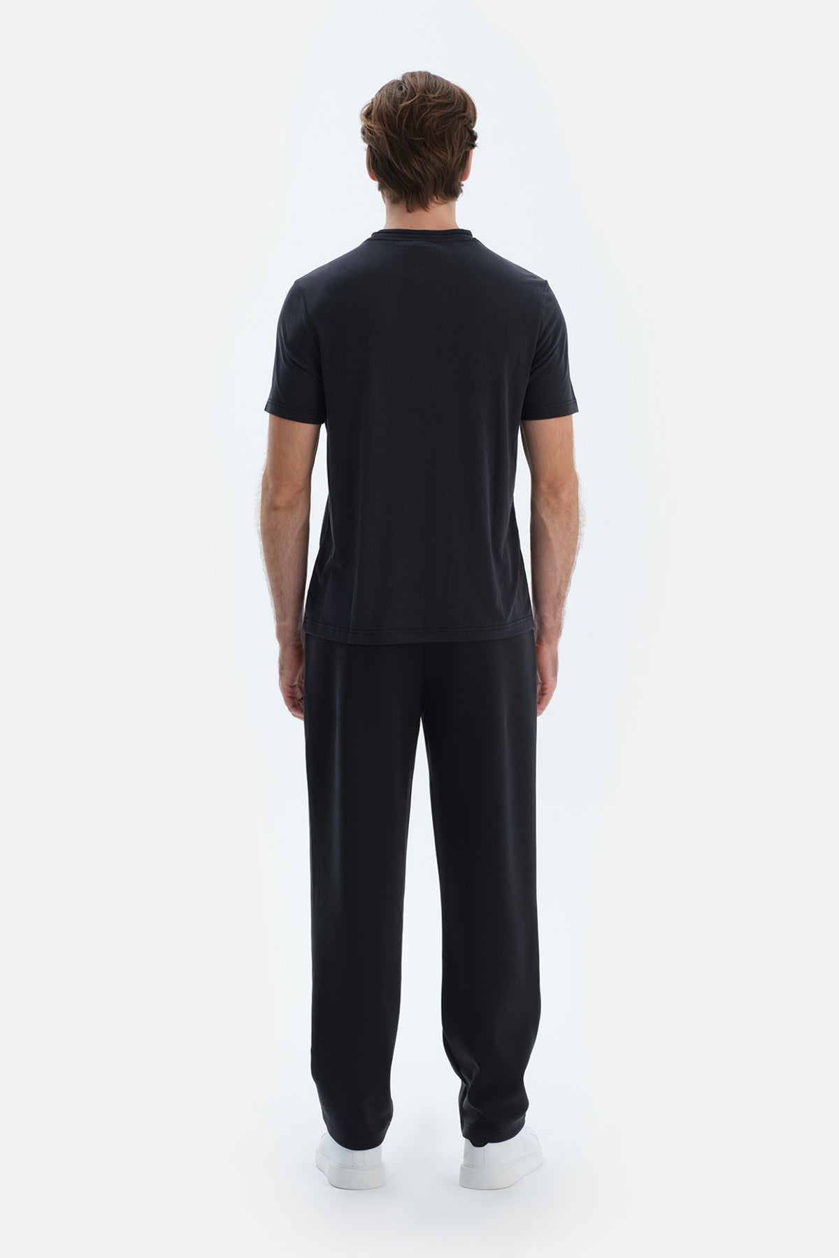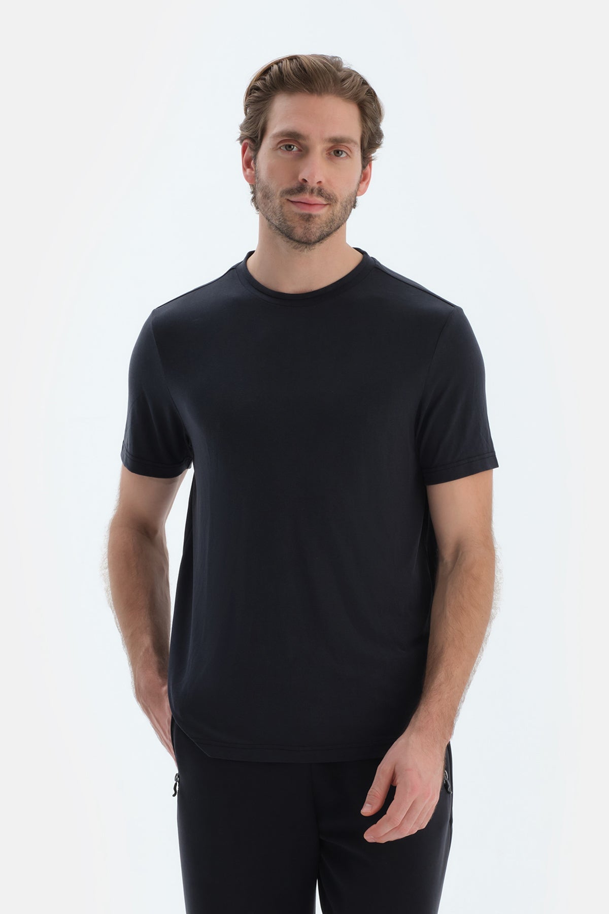 Siyah Bisiklet Yaka Kısa Kollu Regular Modal Tişört