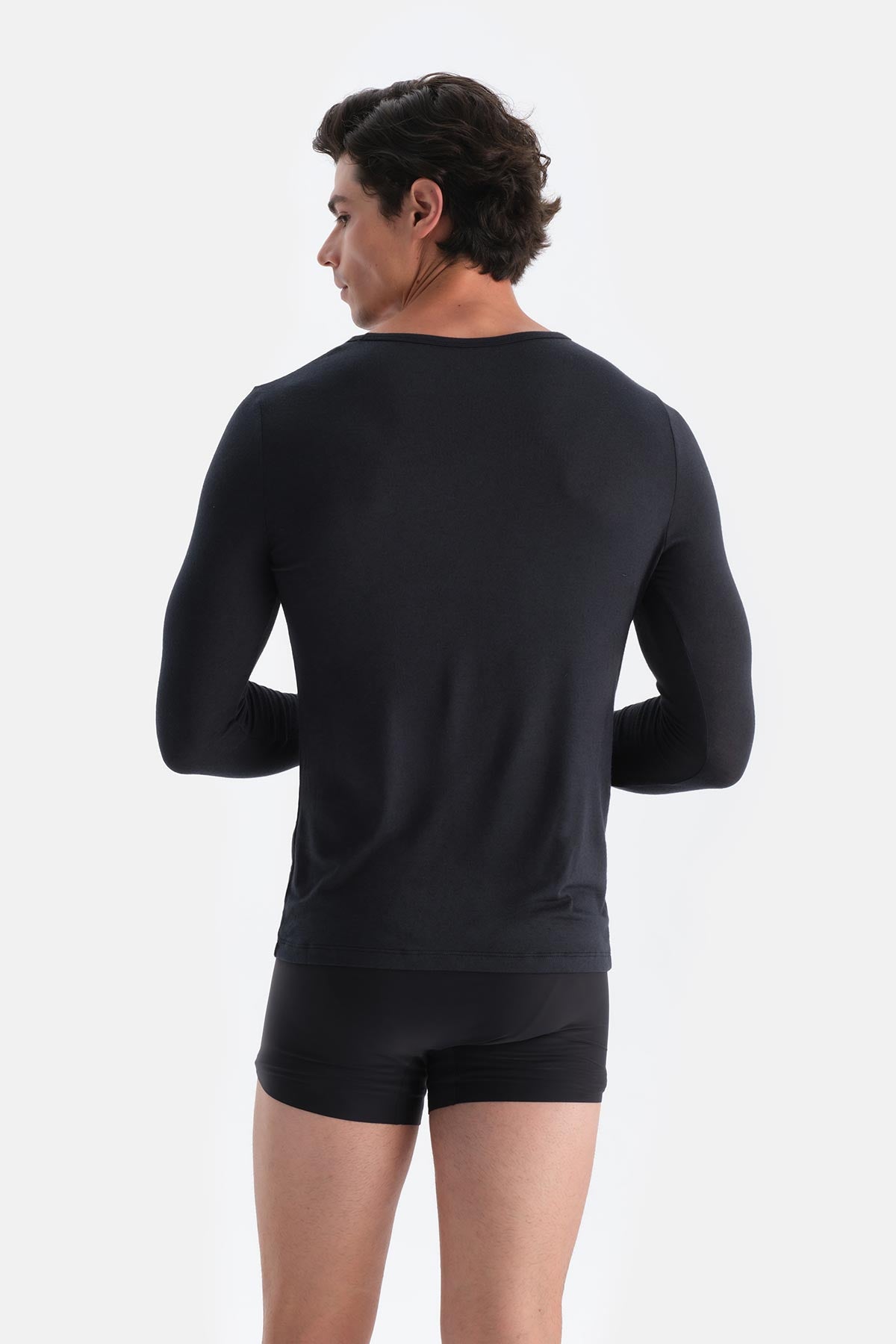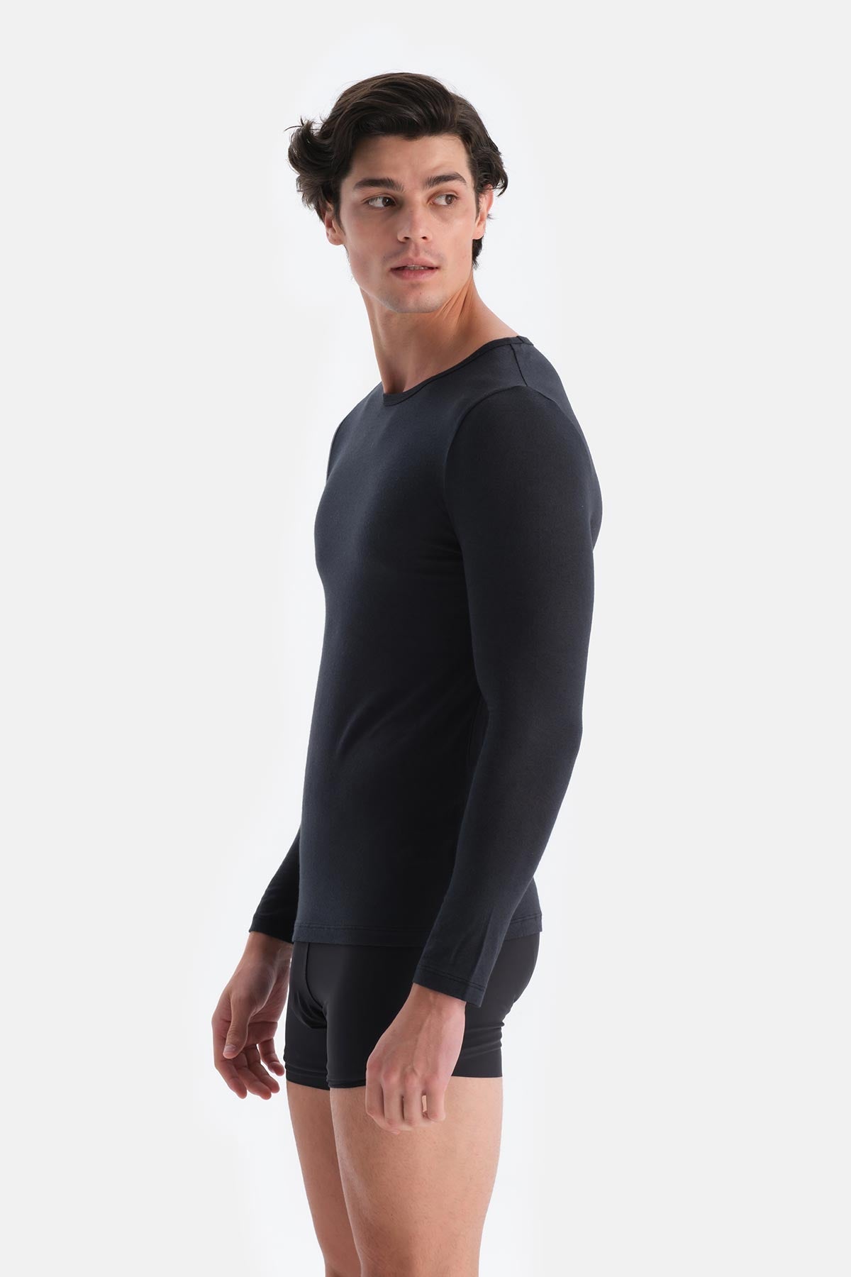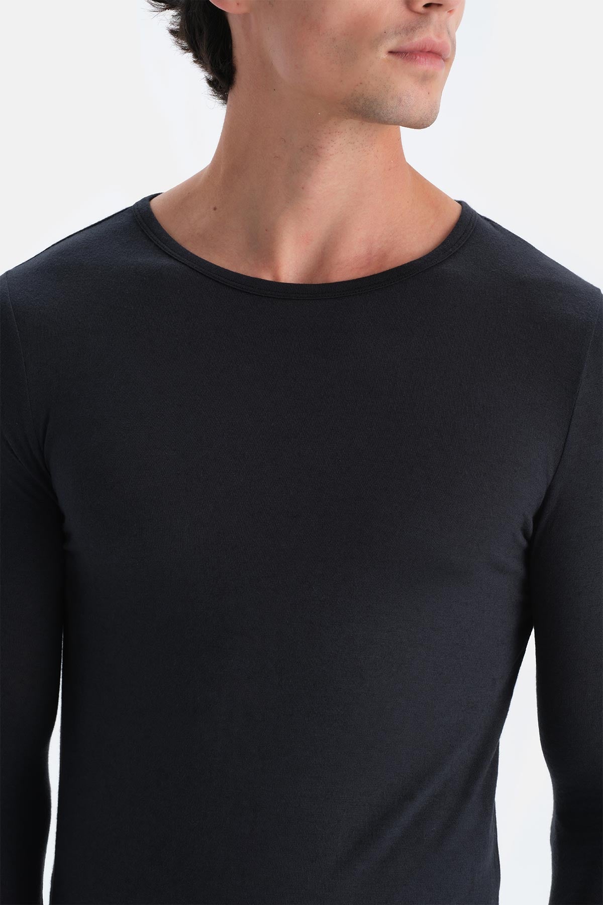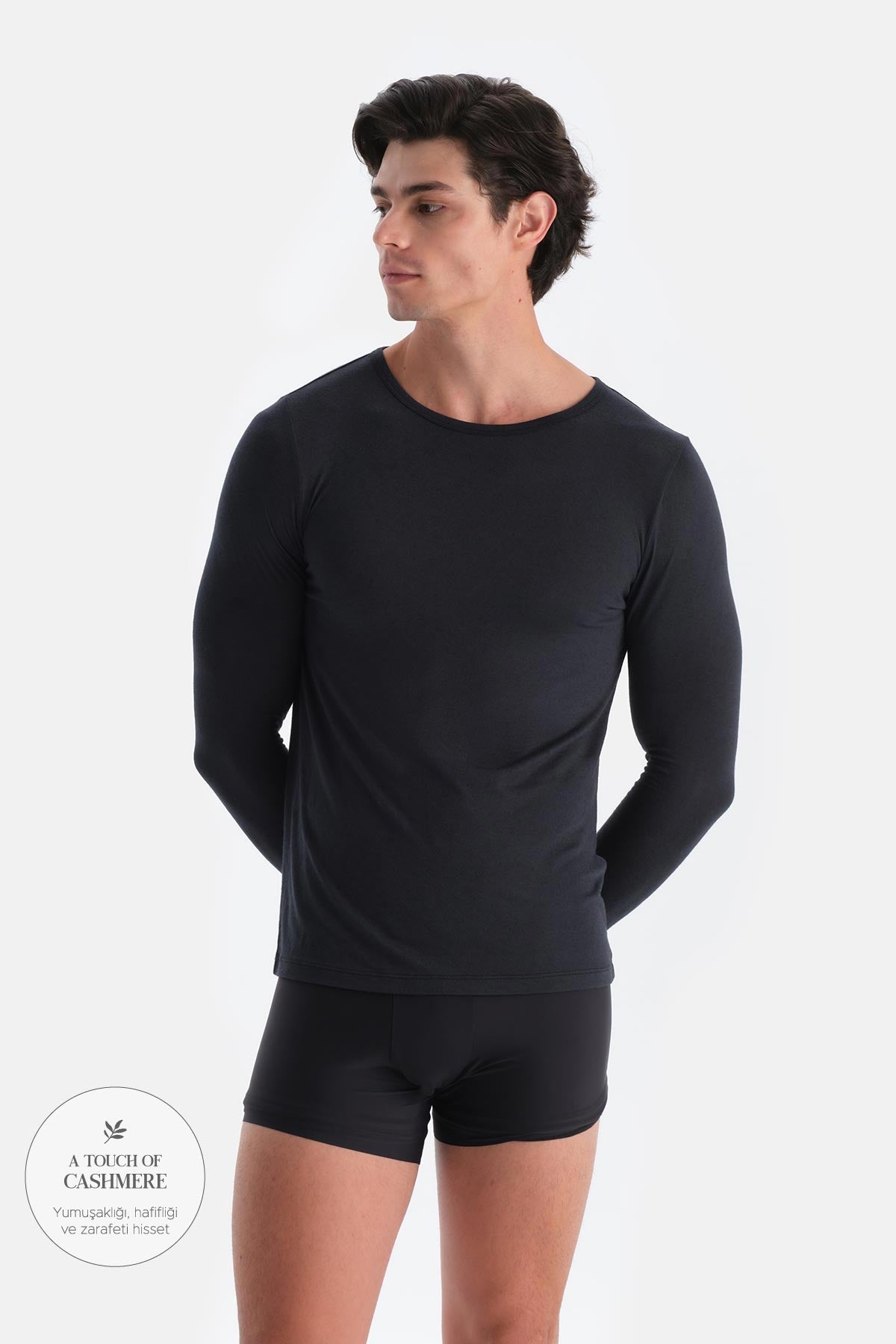 Siyah D1051 Modal Kaşmir Bisiklet Yaka Uzun Kollu Üst