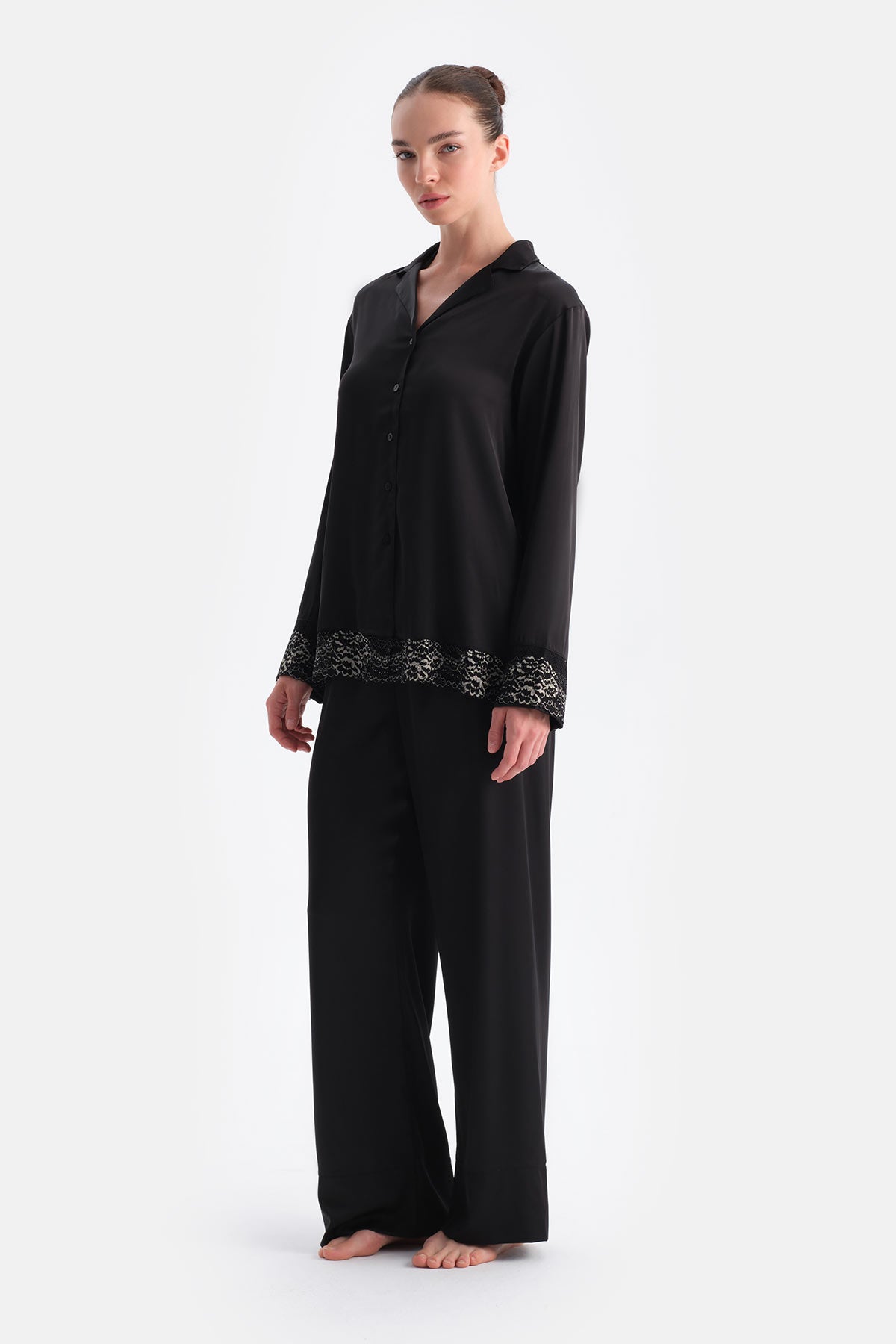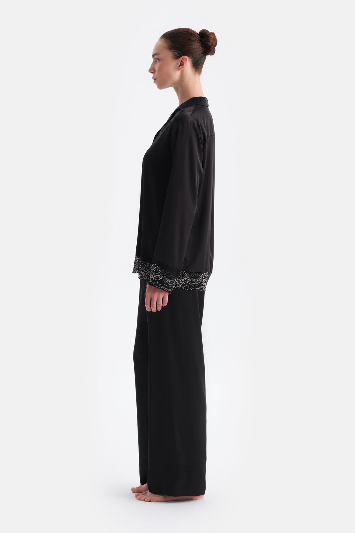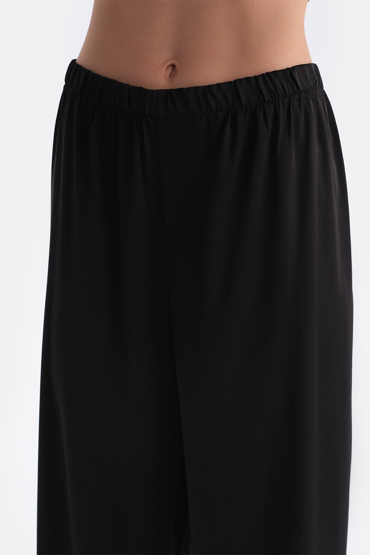 Siyah Dantel Detaylı Saten Brıde Pantolon
