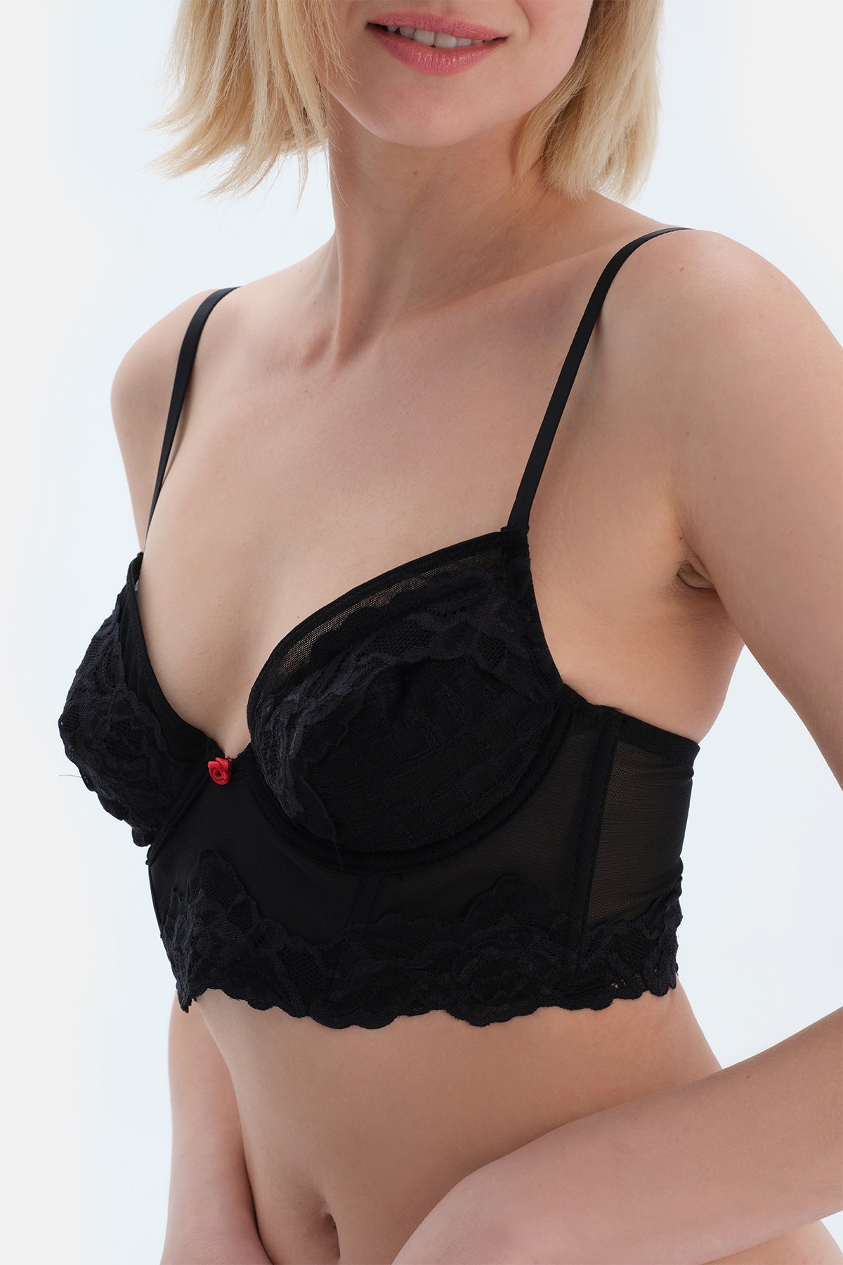 Siyah Dantel Ve Tüllü Toparlayıcı Sütyen