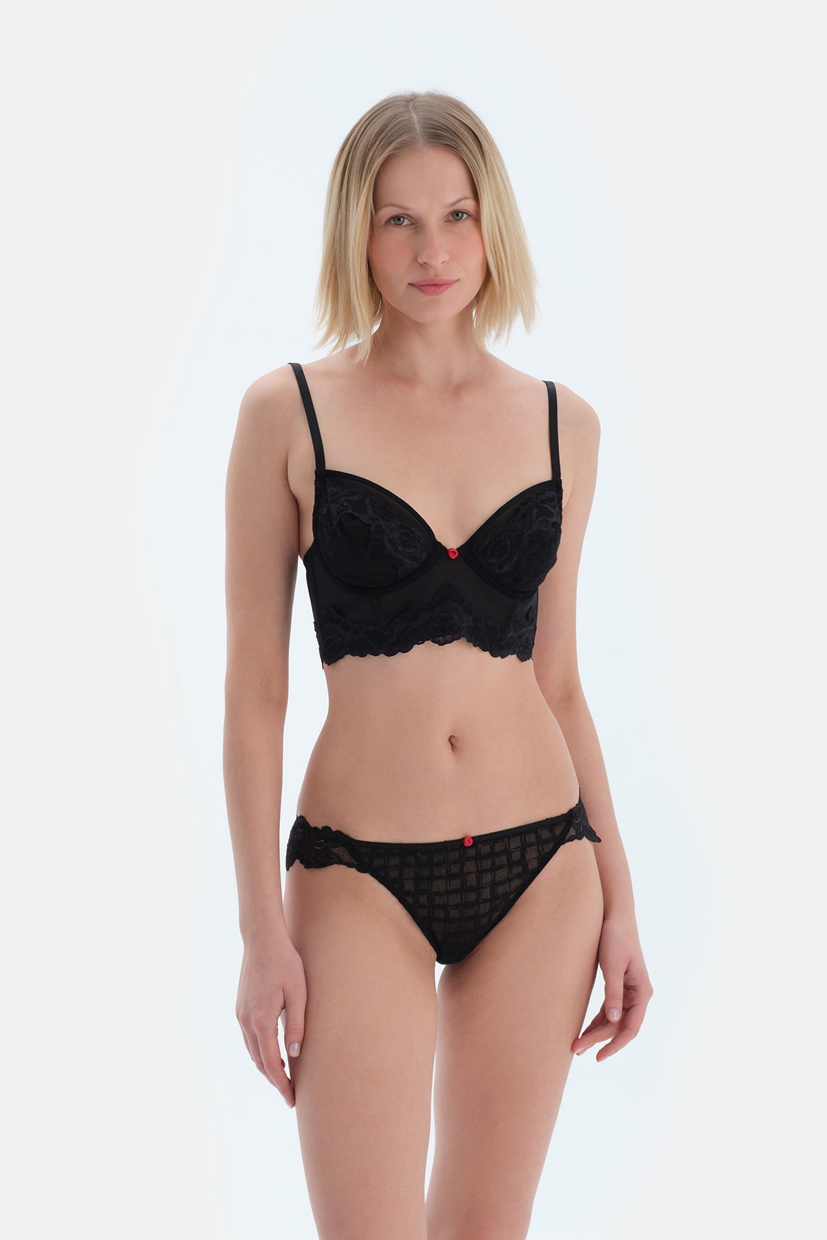 Siyah Dantel Ve Tüllü Toparlayıcı Sütyen 25SW23391MA_366 şimdi Dagi'de. Kaliteli, konforlu ve özel fiyatlarla sizleri bekliyor.