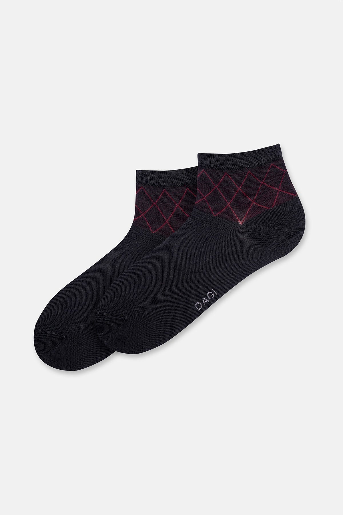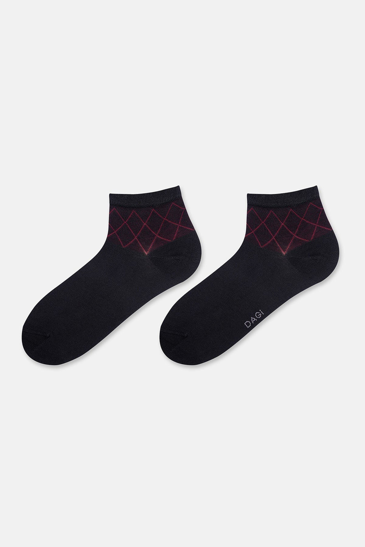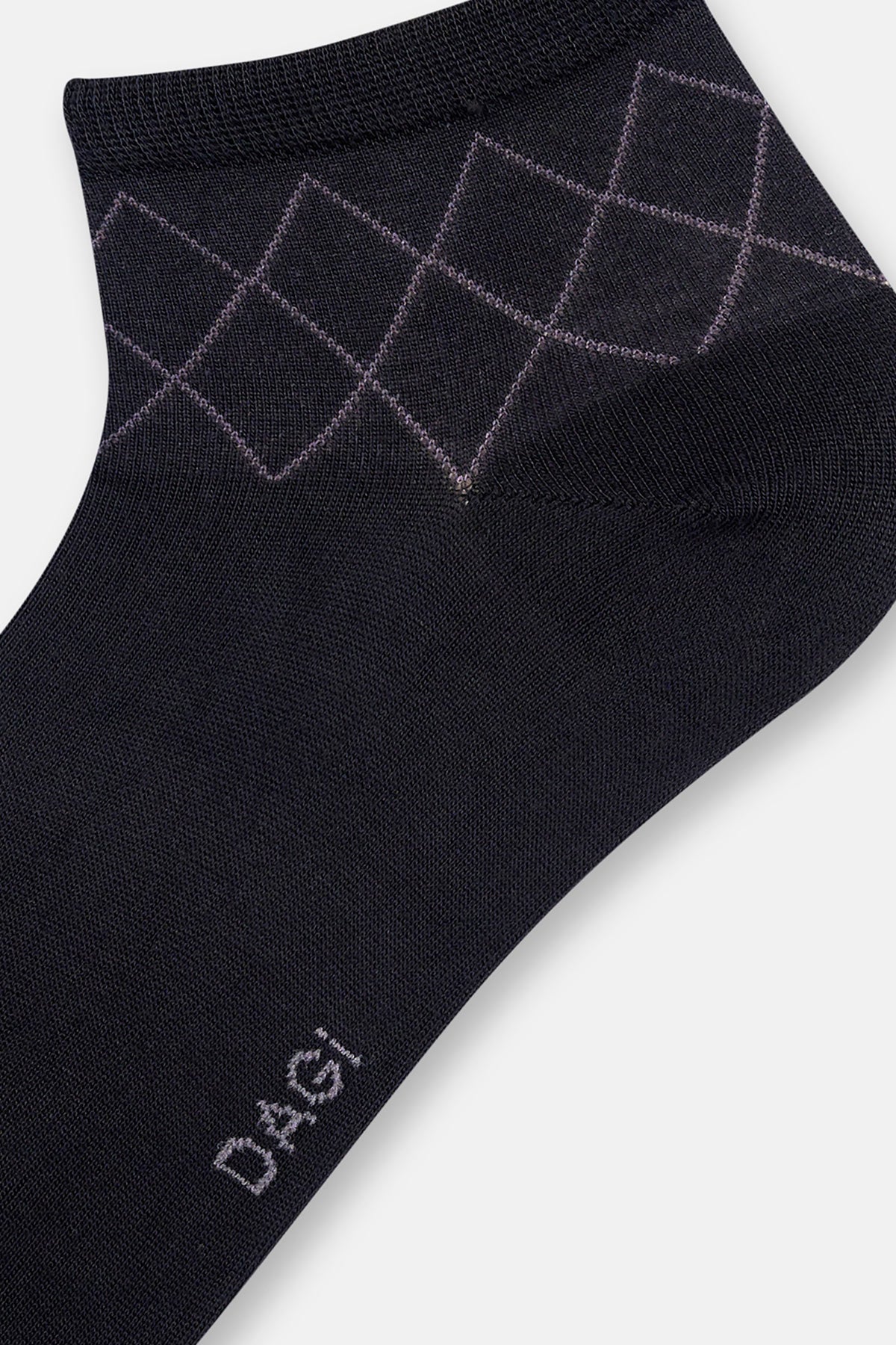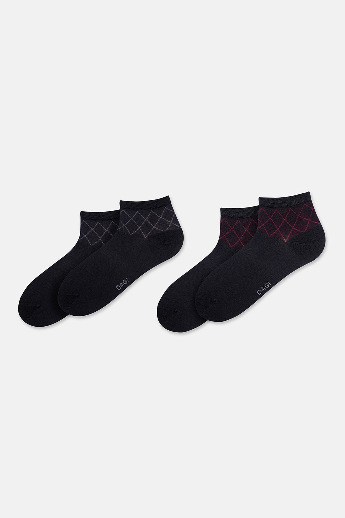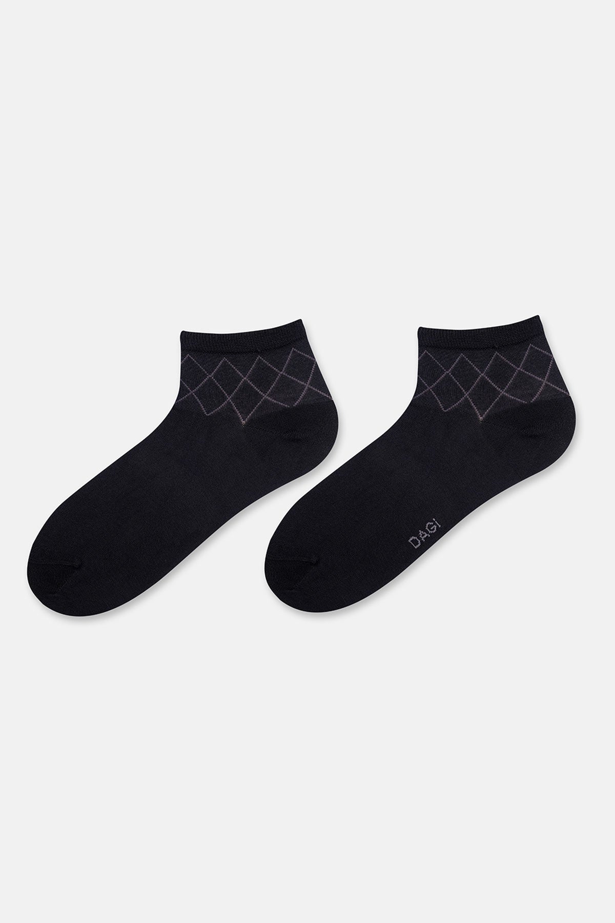 Siyah Erkek 2'li Bambu Baklava Desen Quarter Çorap