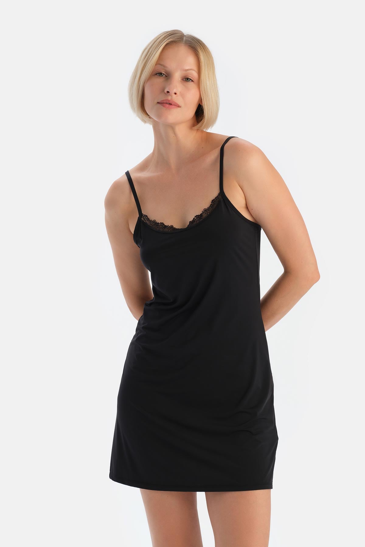 Siyah Ince Askılı Dantelli Jupon Elbise B0169316_SY şimdi Dagi'de. Kaliteli, konforlu ve özel fiyatlarla sizleri bekliyor.