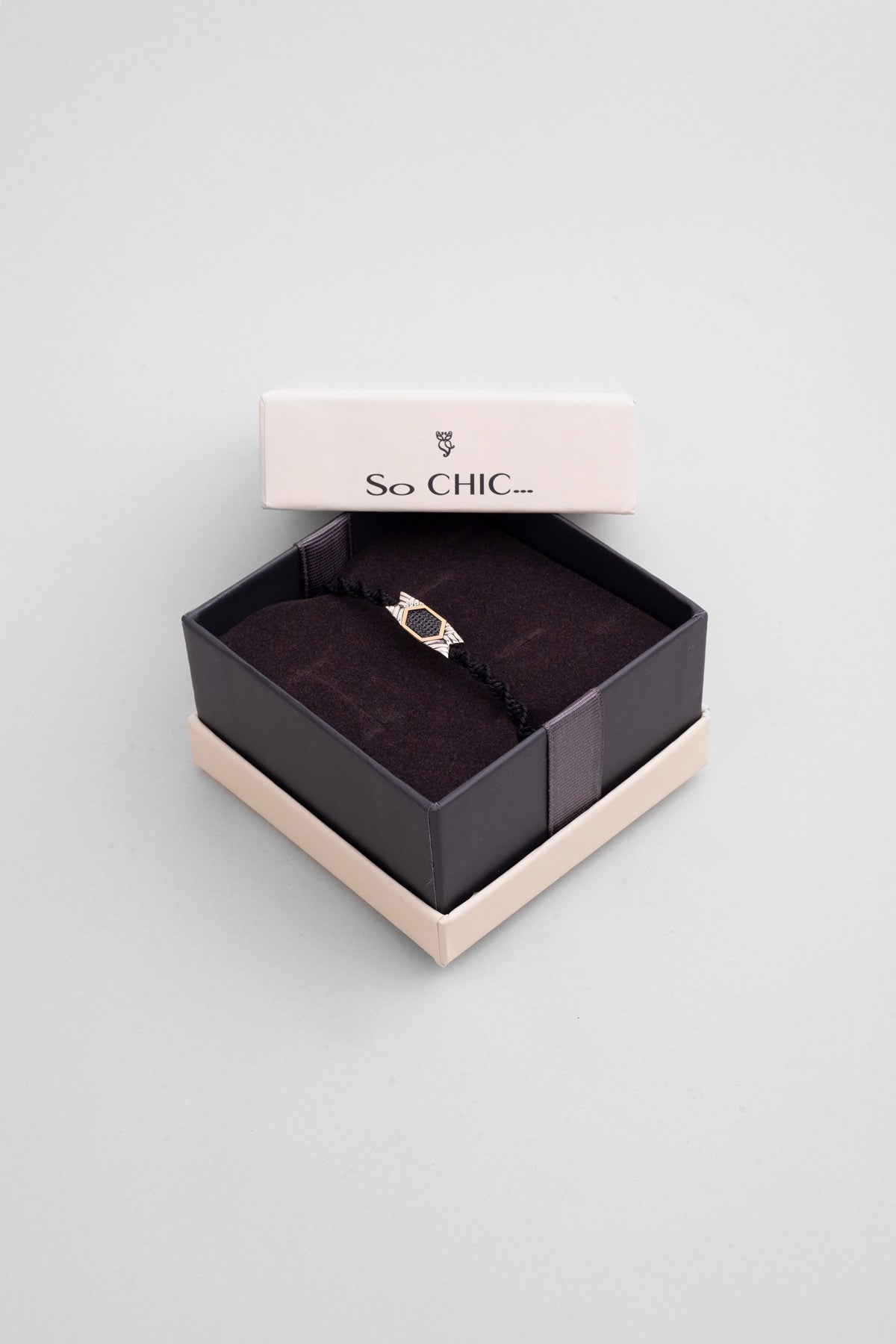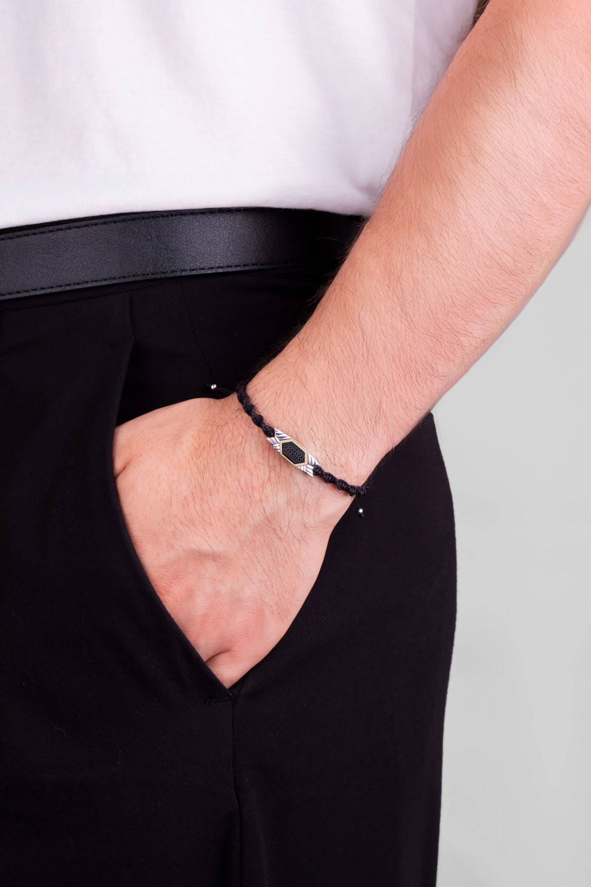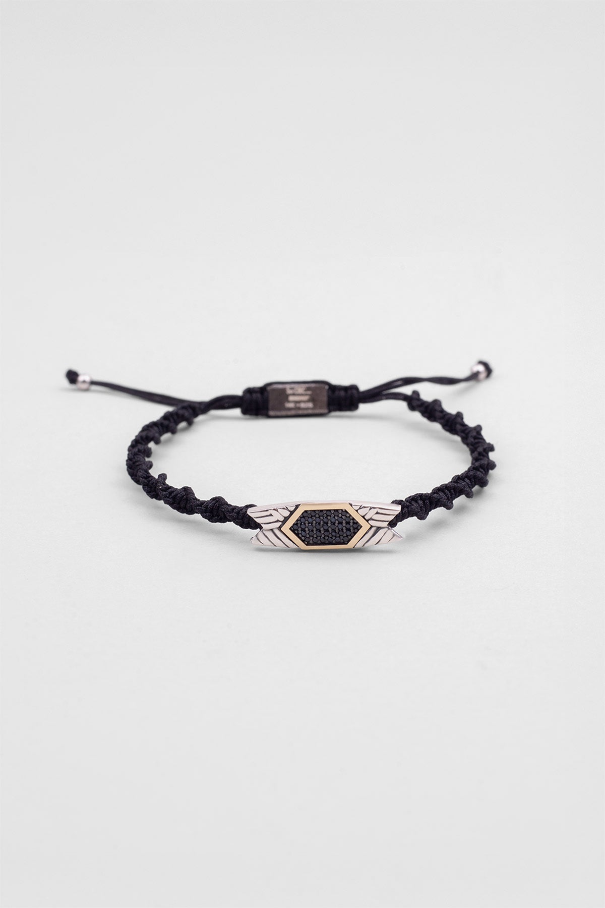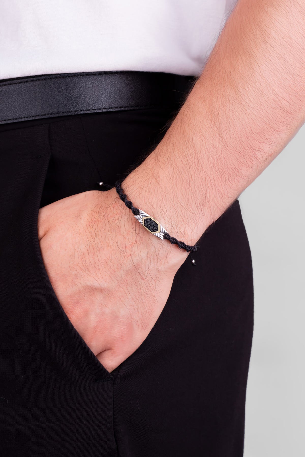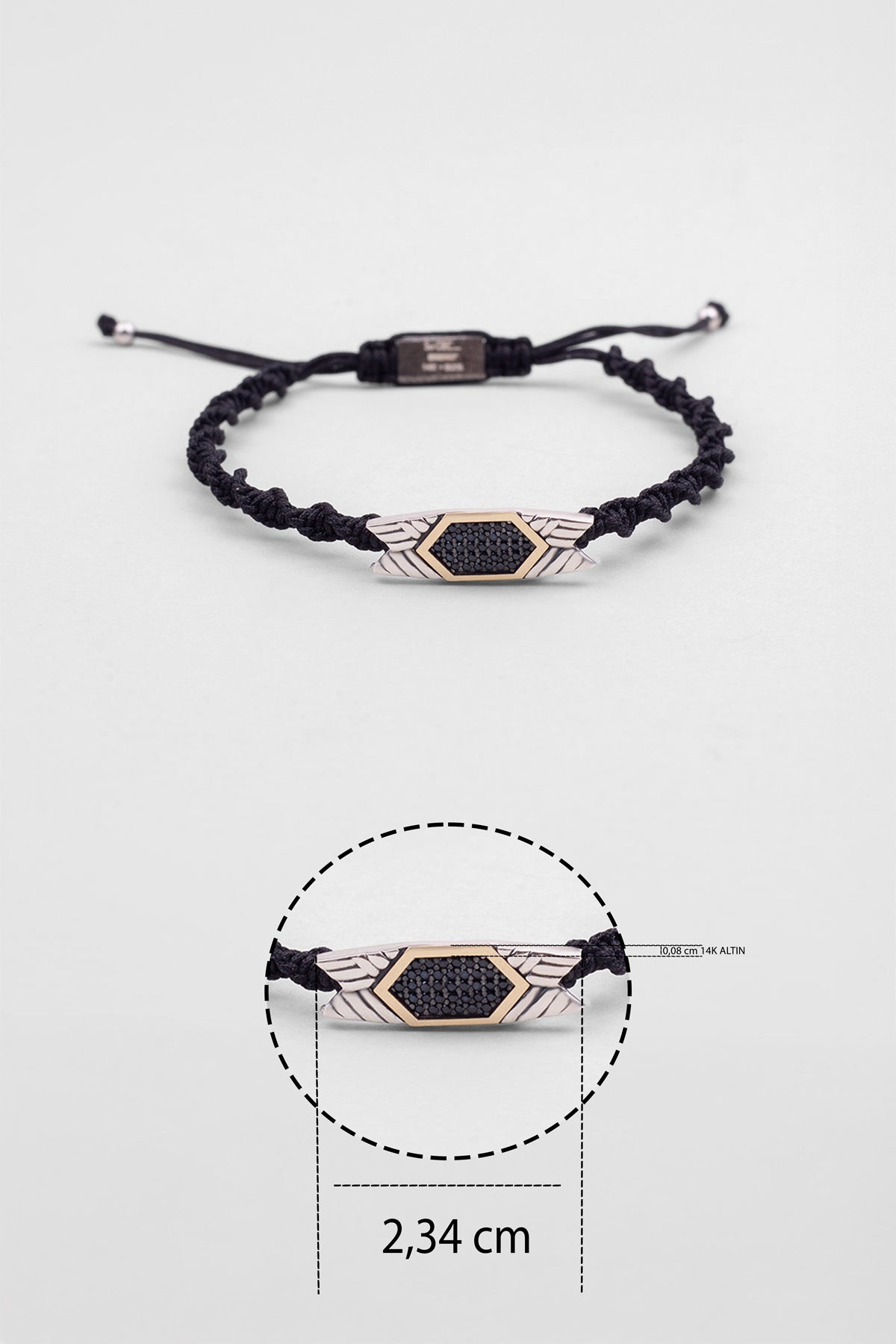 Siyah Ipli 14 Ayar Altın Erkek Ayarlanabilir Gümüş Ipli Bileklik 07295110299