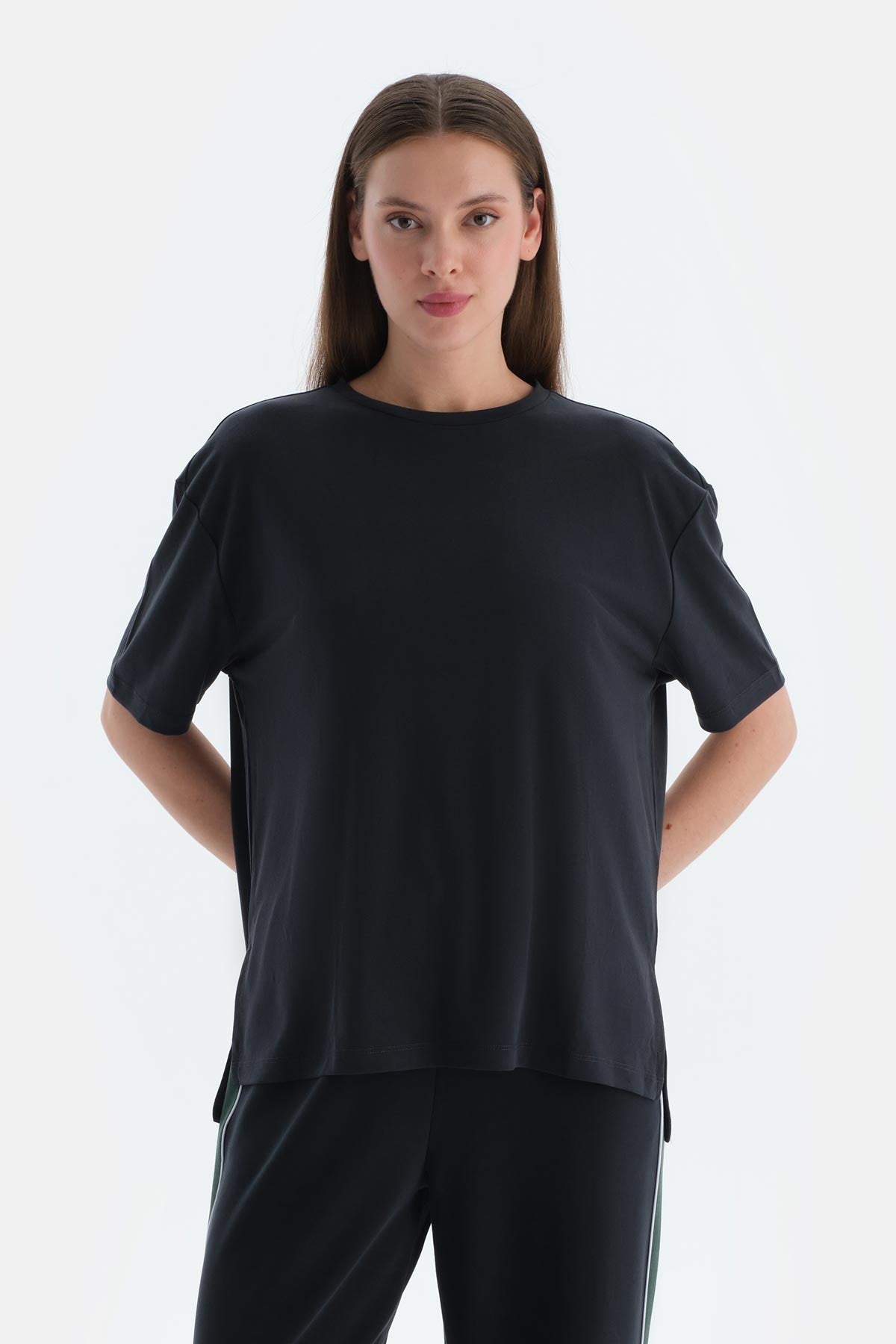 Siyah Kadın Modal Yırtmaç Detaylı Tişört 25SW11383BB_366 şimdi Dagi'de. Kaliteli, konforlu ve özel fiyatlarla sizleri bekliyor.