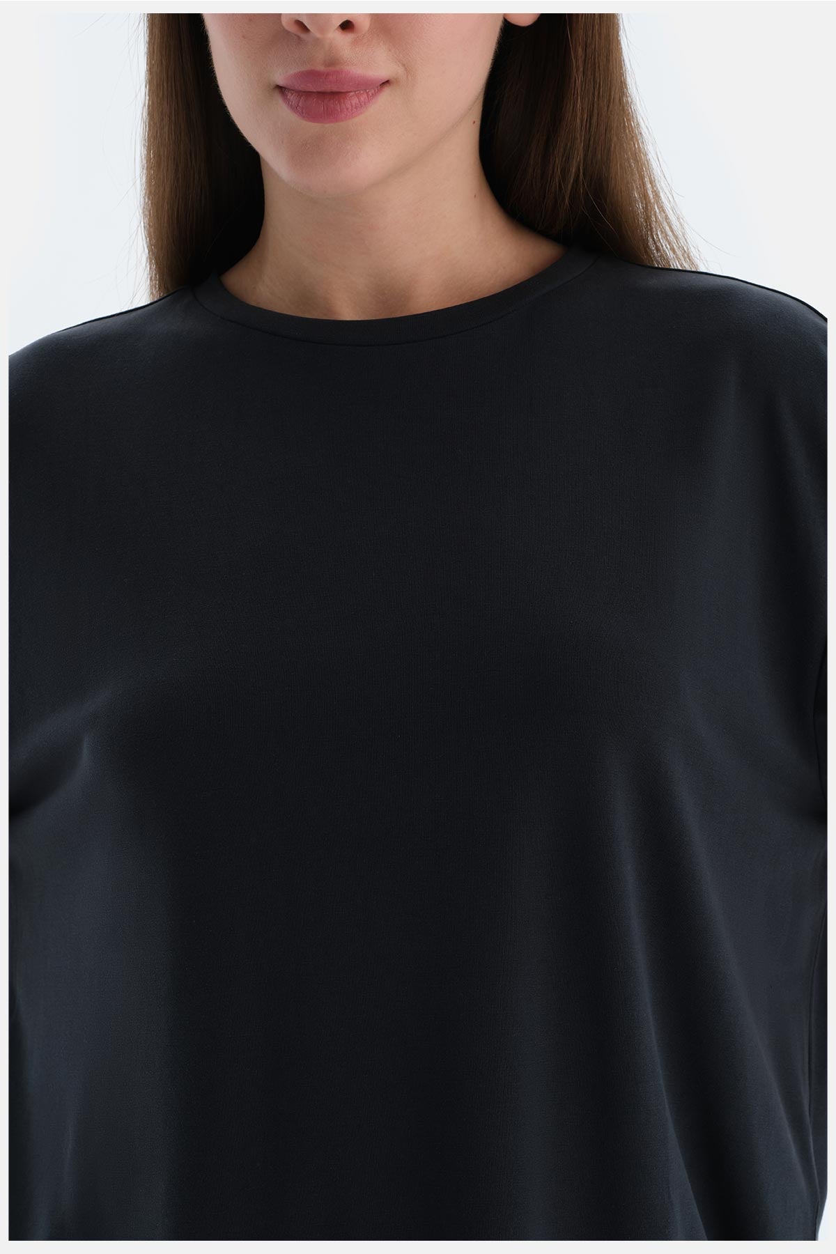 Siyah Kadın Modal Yırtmaç Detaylı Tişört