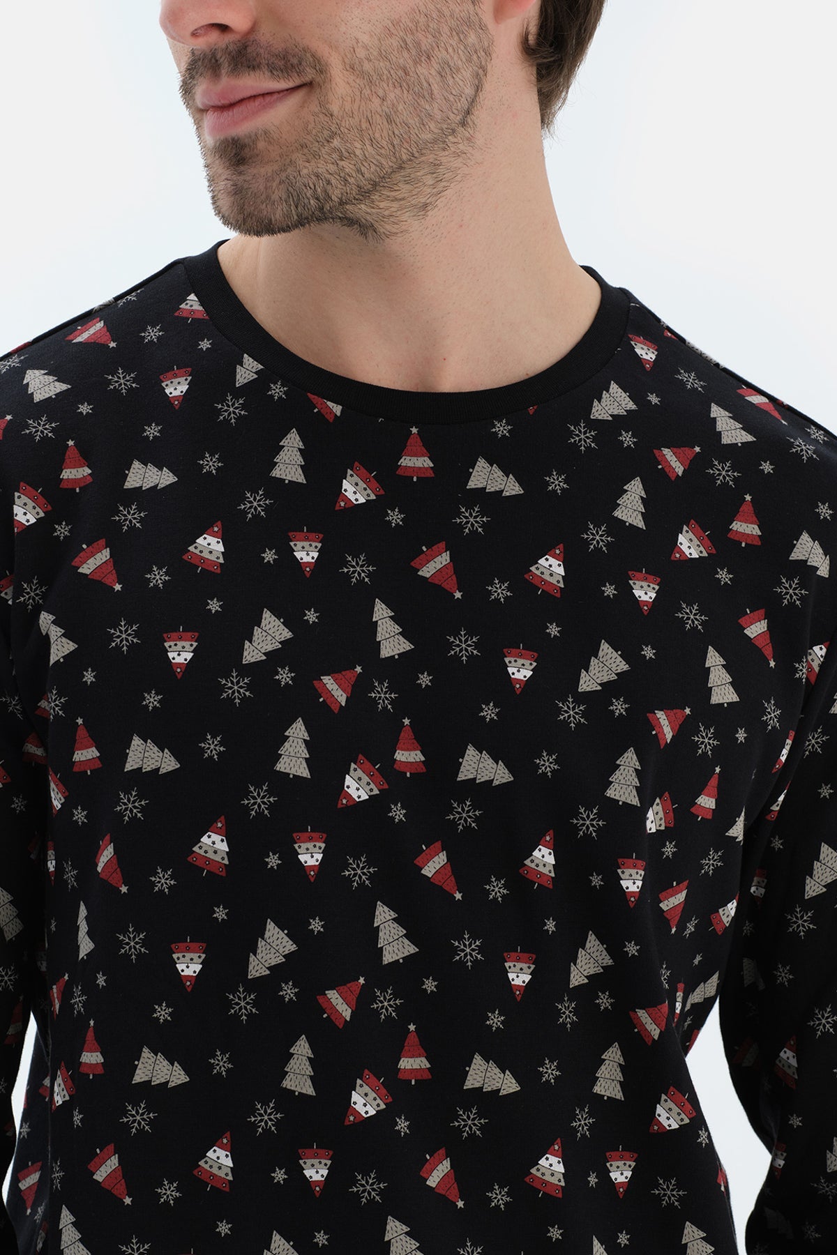 Siyah Metraj Baskılı Ipek Apre Interlok Pijama Takımı