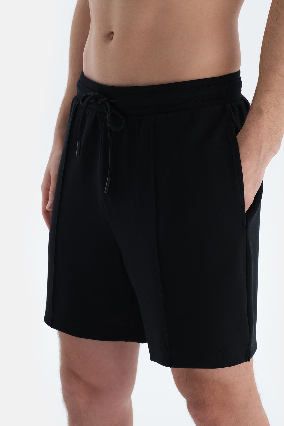 Siyah Nervür Detaylı Cepli Ve Kordonlu Şort