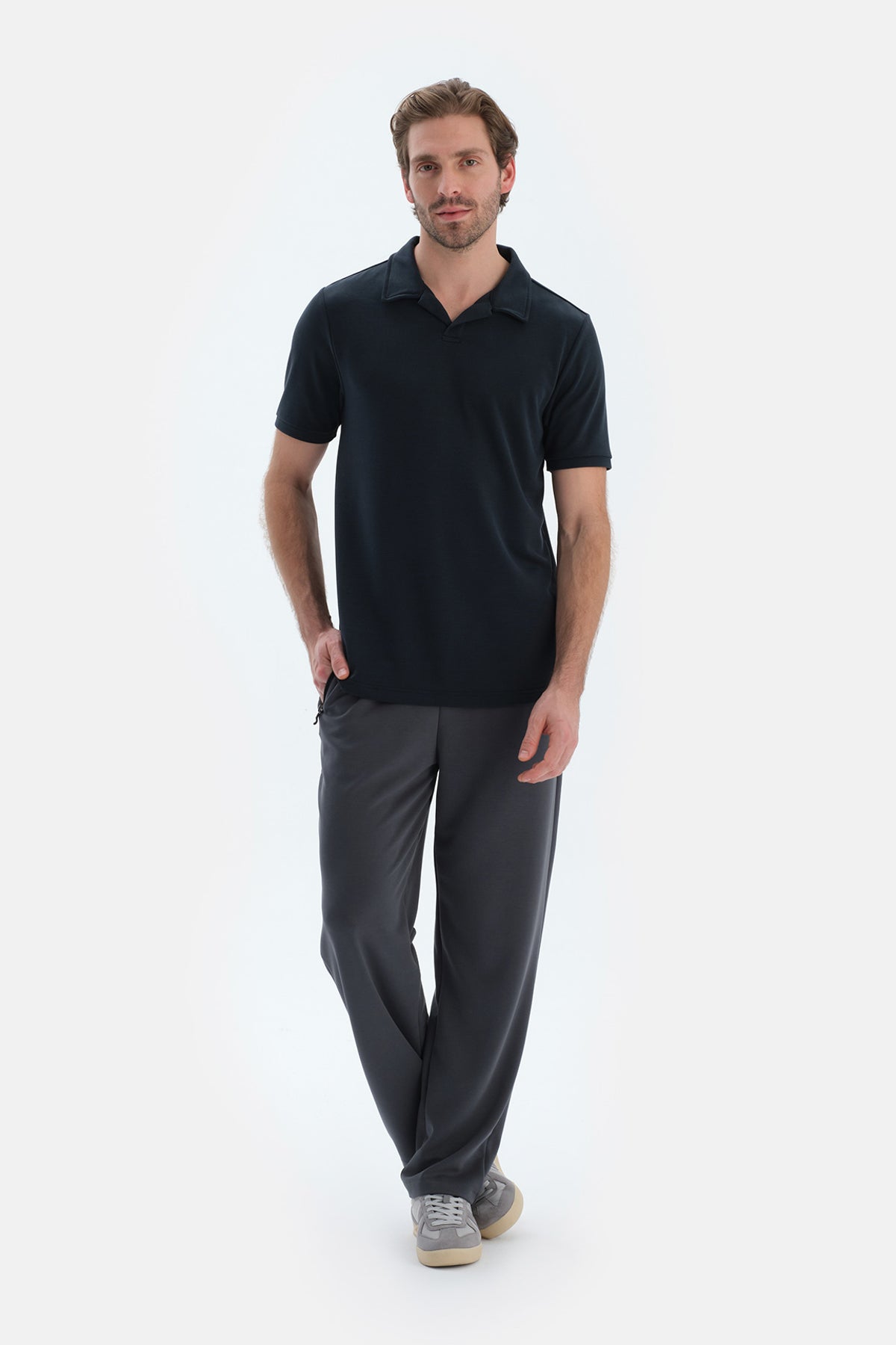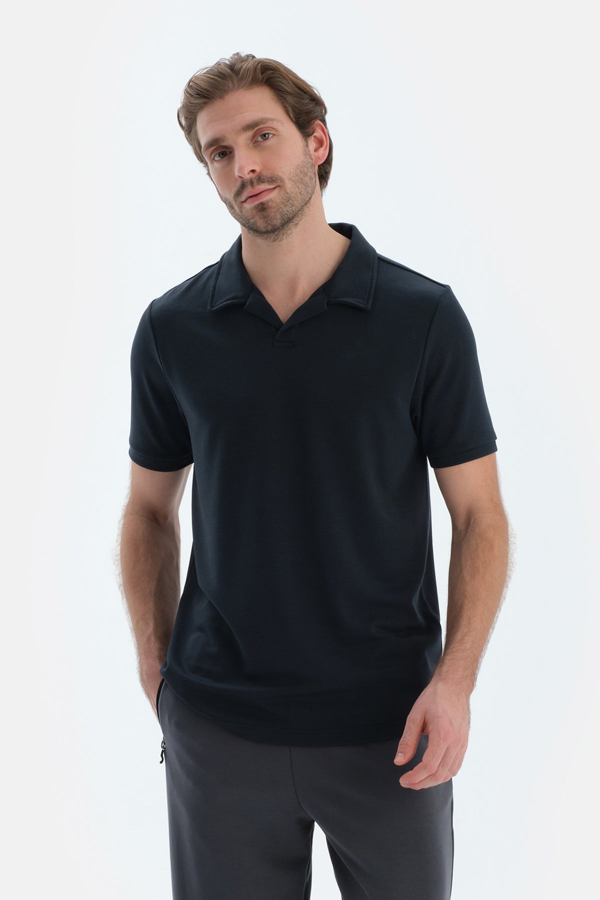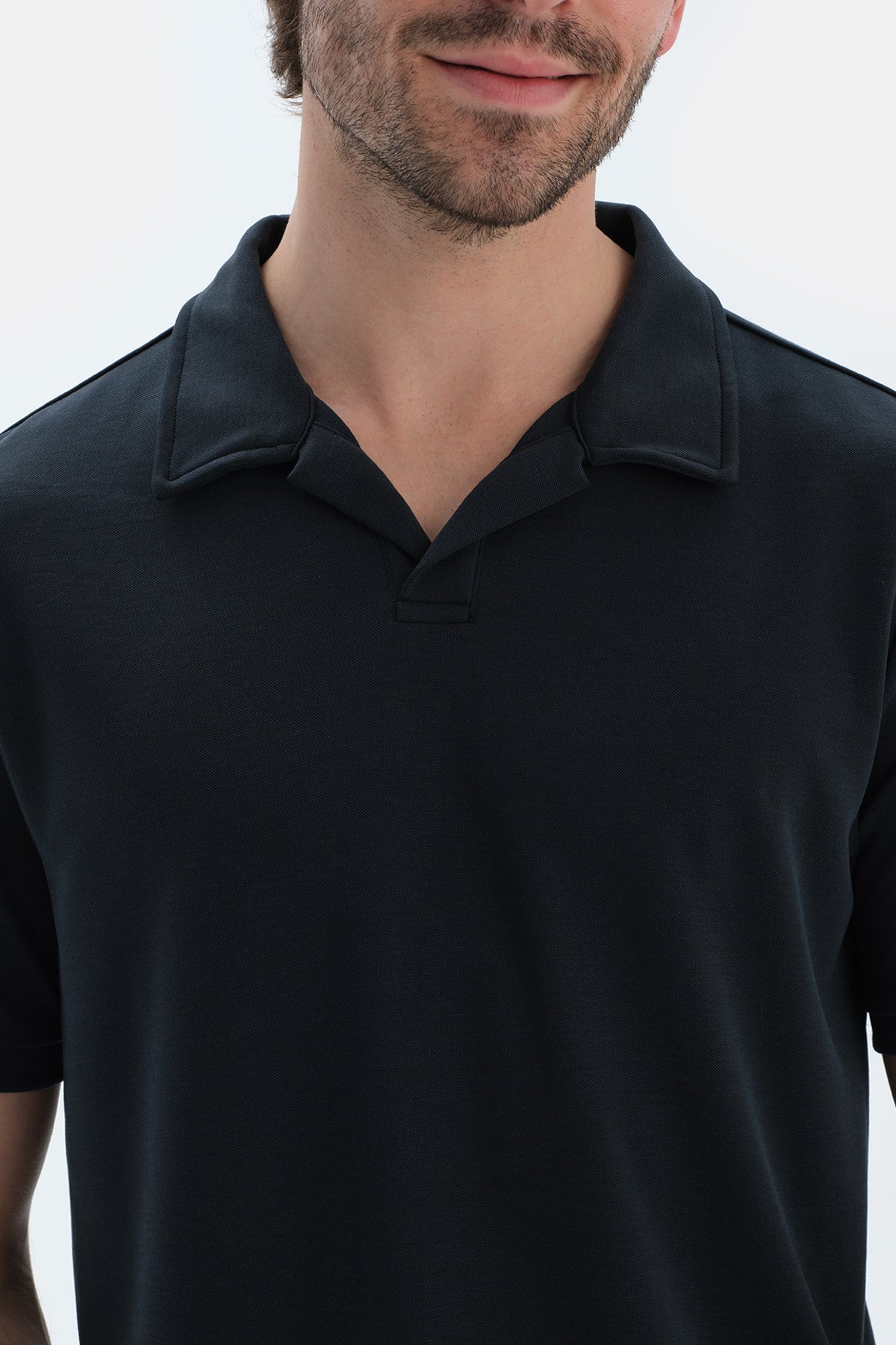 Siyah Polo Yaka Kısa Kollu Modal Pike Tişört