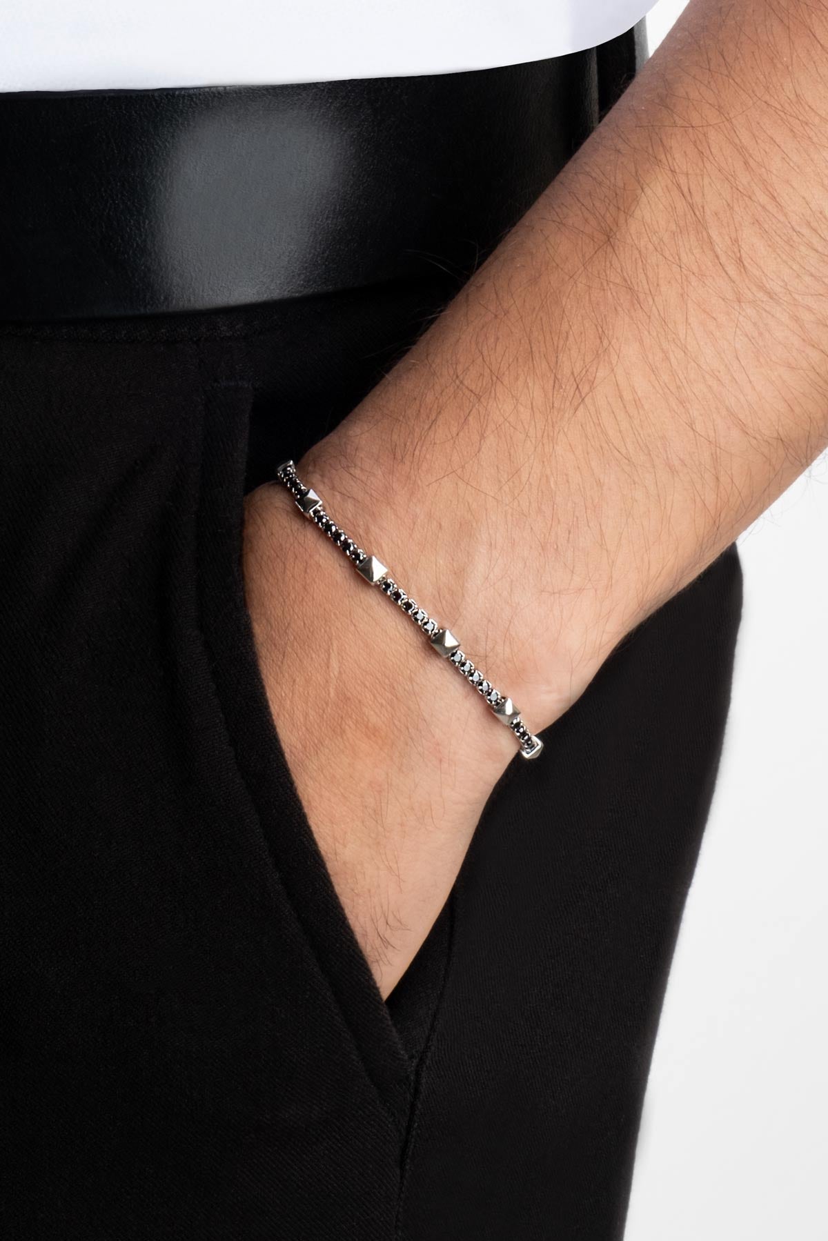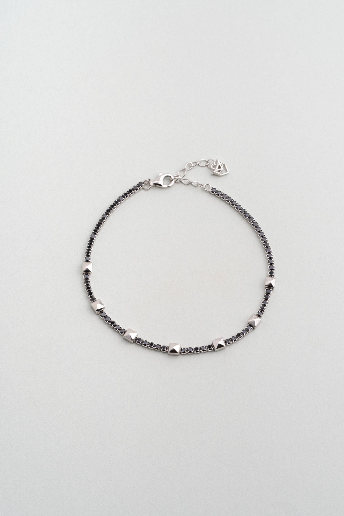 Siyah Taşlı 22 Cm Gümüş Erkek Su Yolu Bileklik 5205390299