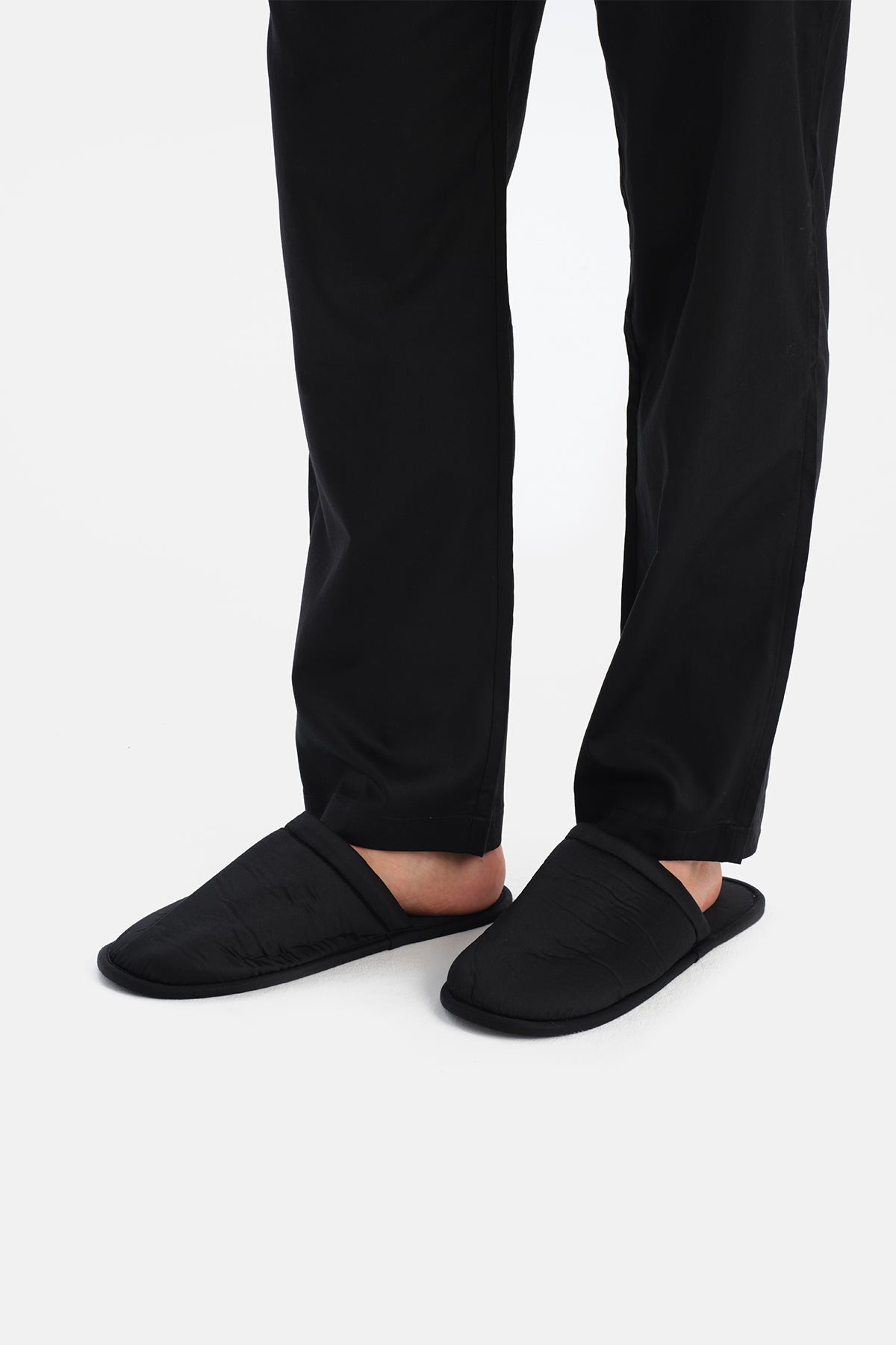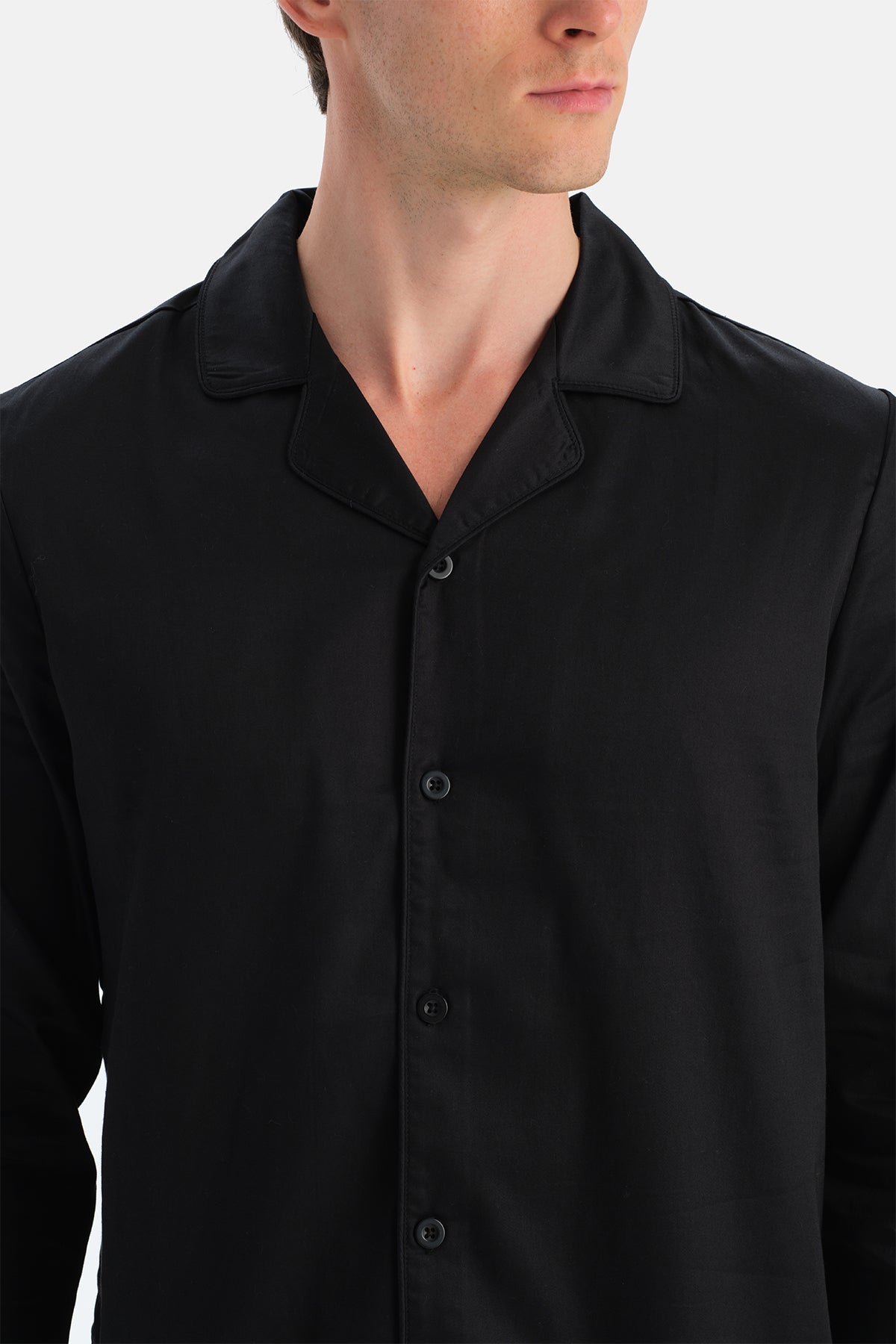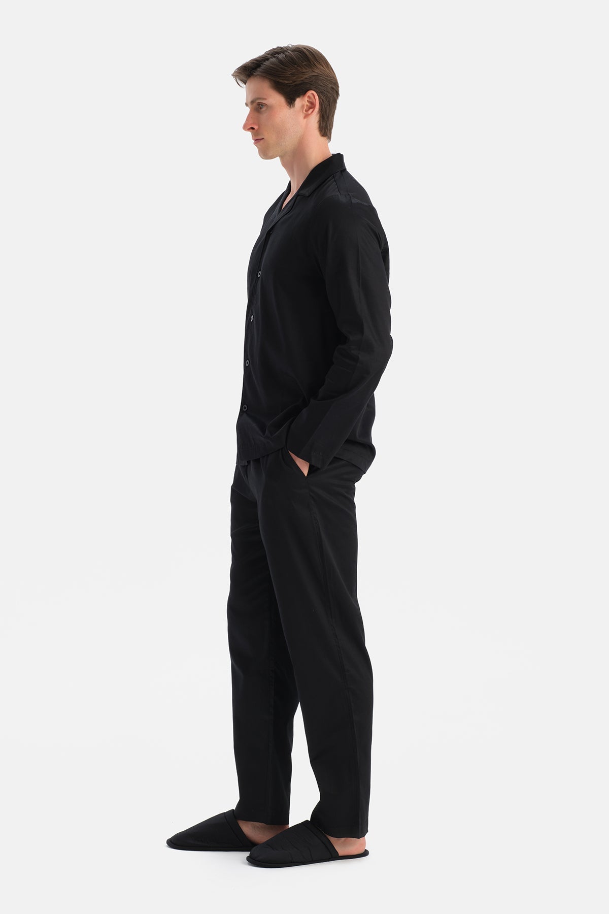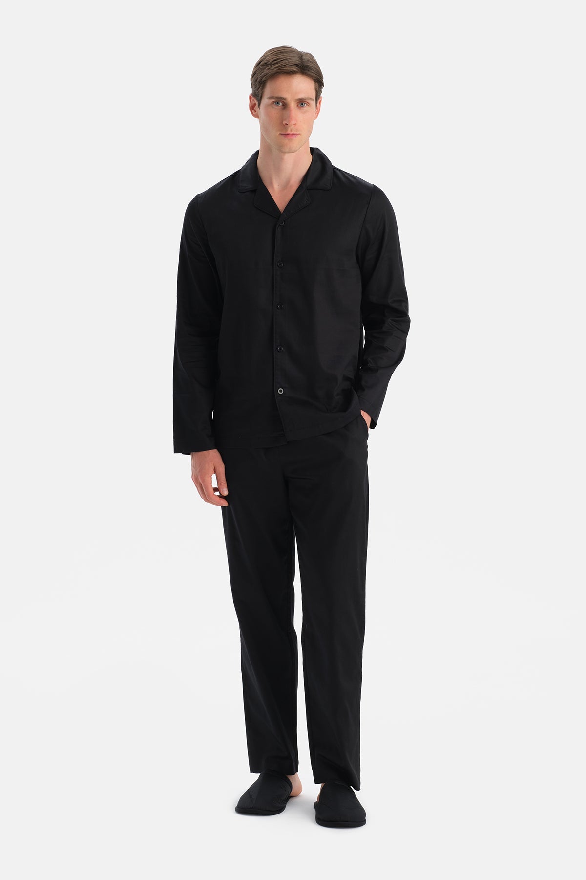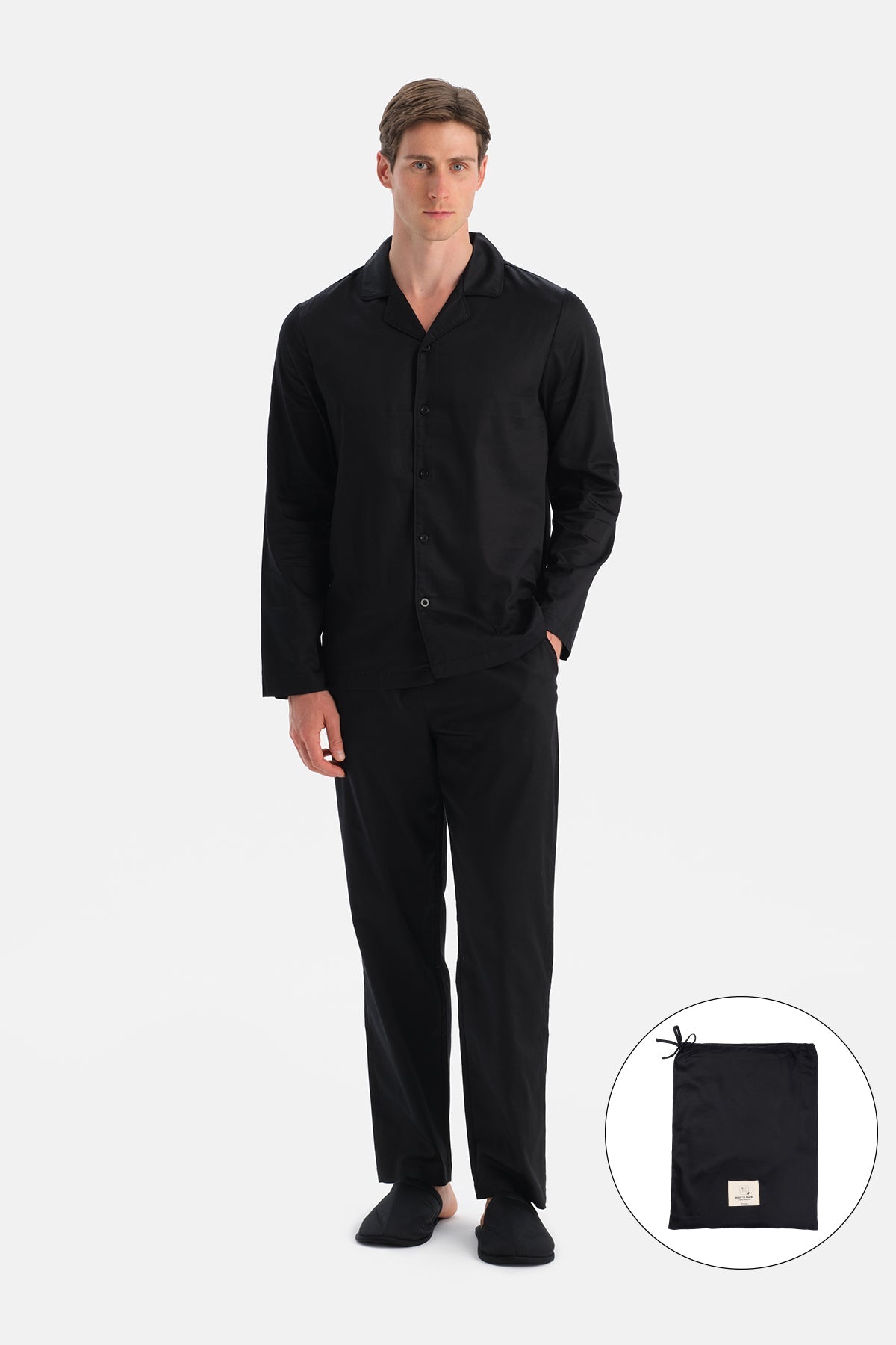 Siyah Travel Biye Detaylı Dokuma Gömlek Pantolon Pijama Seti