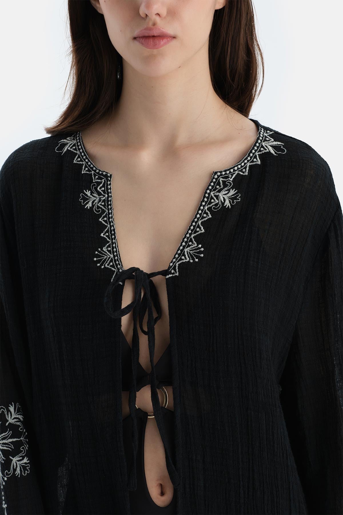 Siyah Uzun Kol Önden Bağlamalı Gömlek