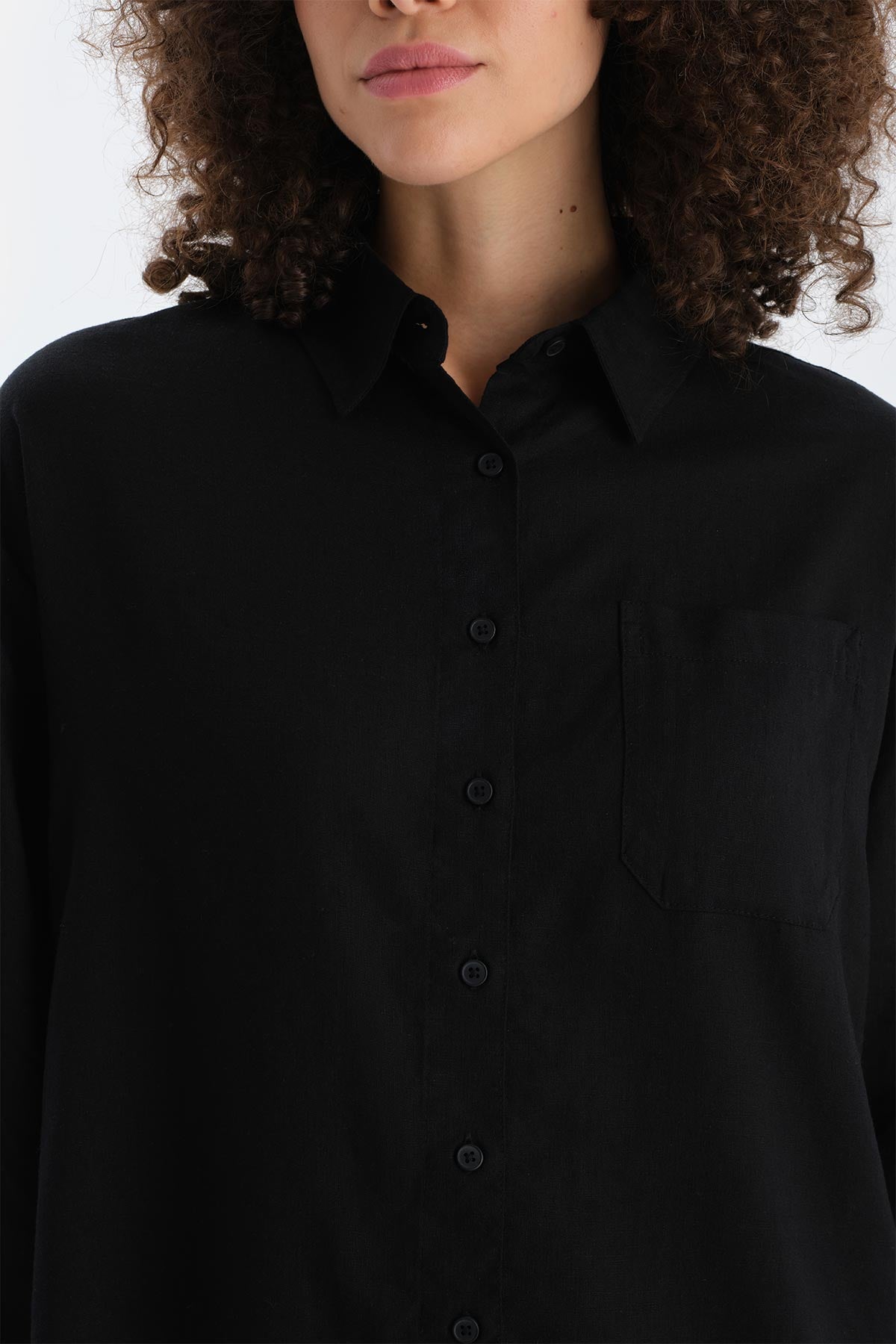 Siyah Uzun Kollu Keten Dokuma Gömlek