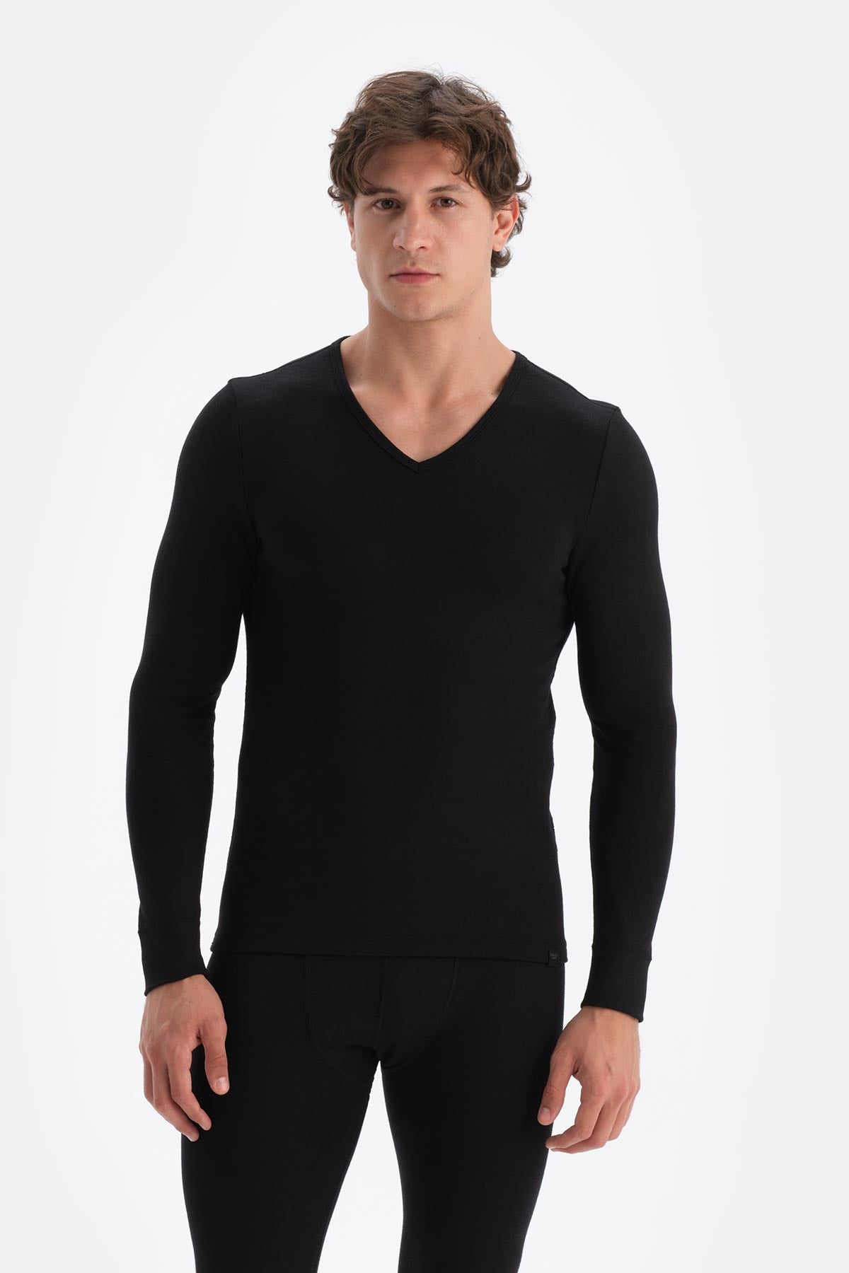 Siyah V Yaka Uzun Kol Erkek Termal Içlik Tek Üst