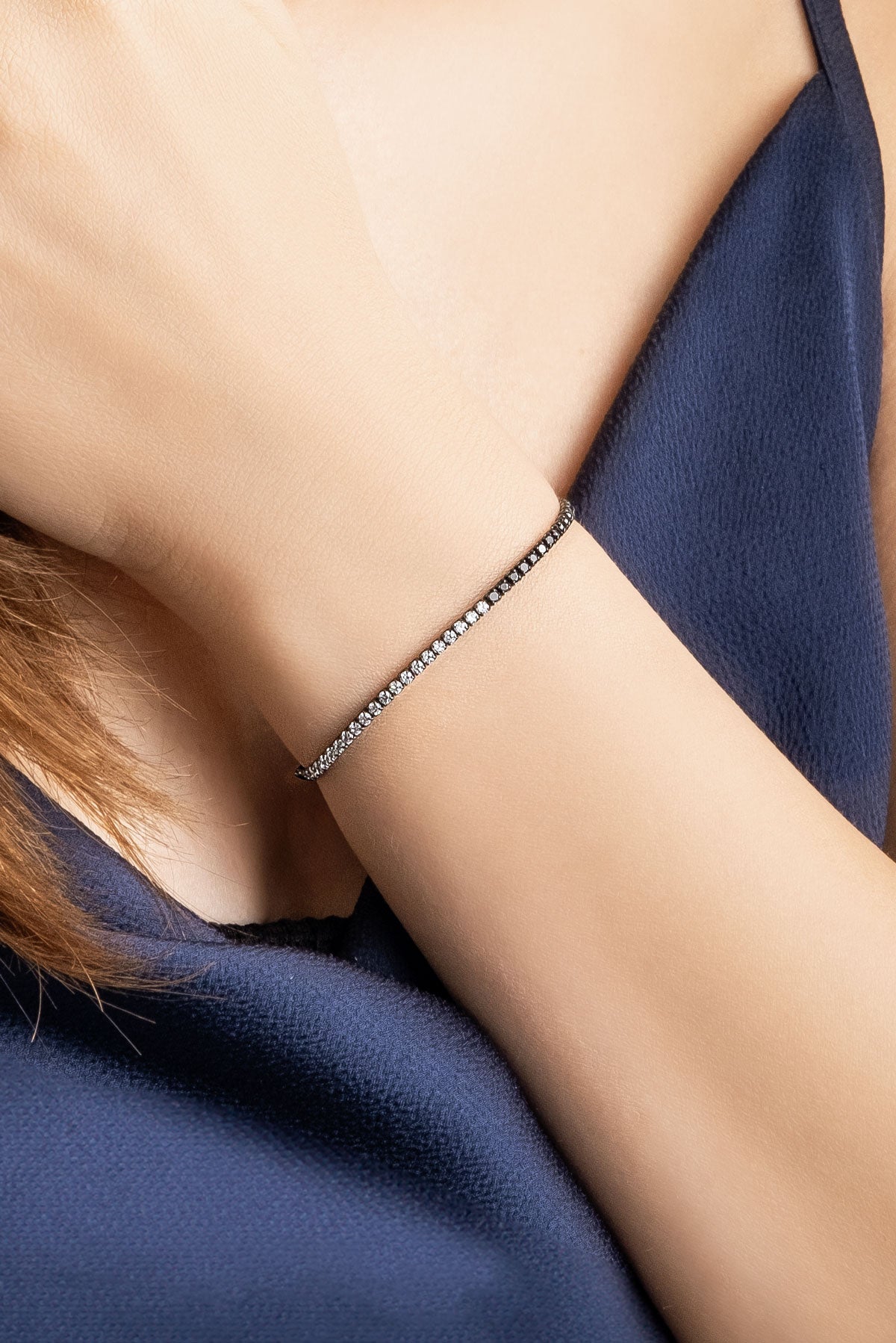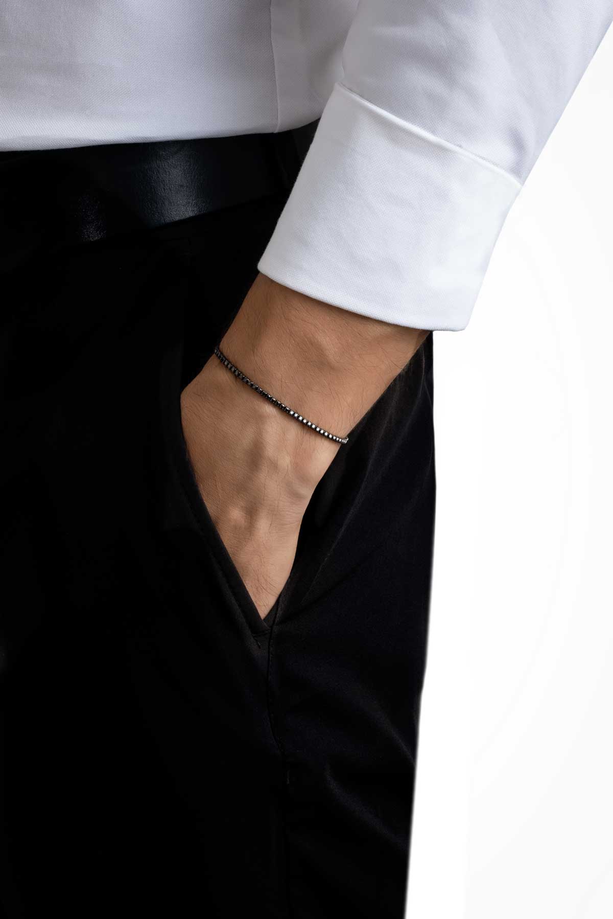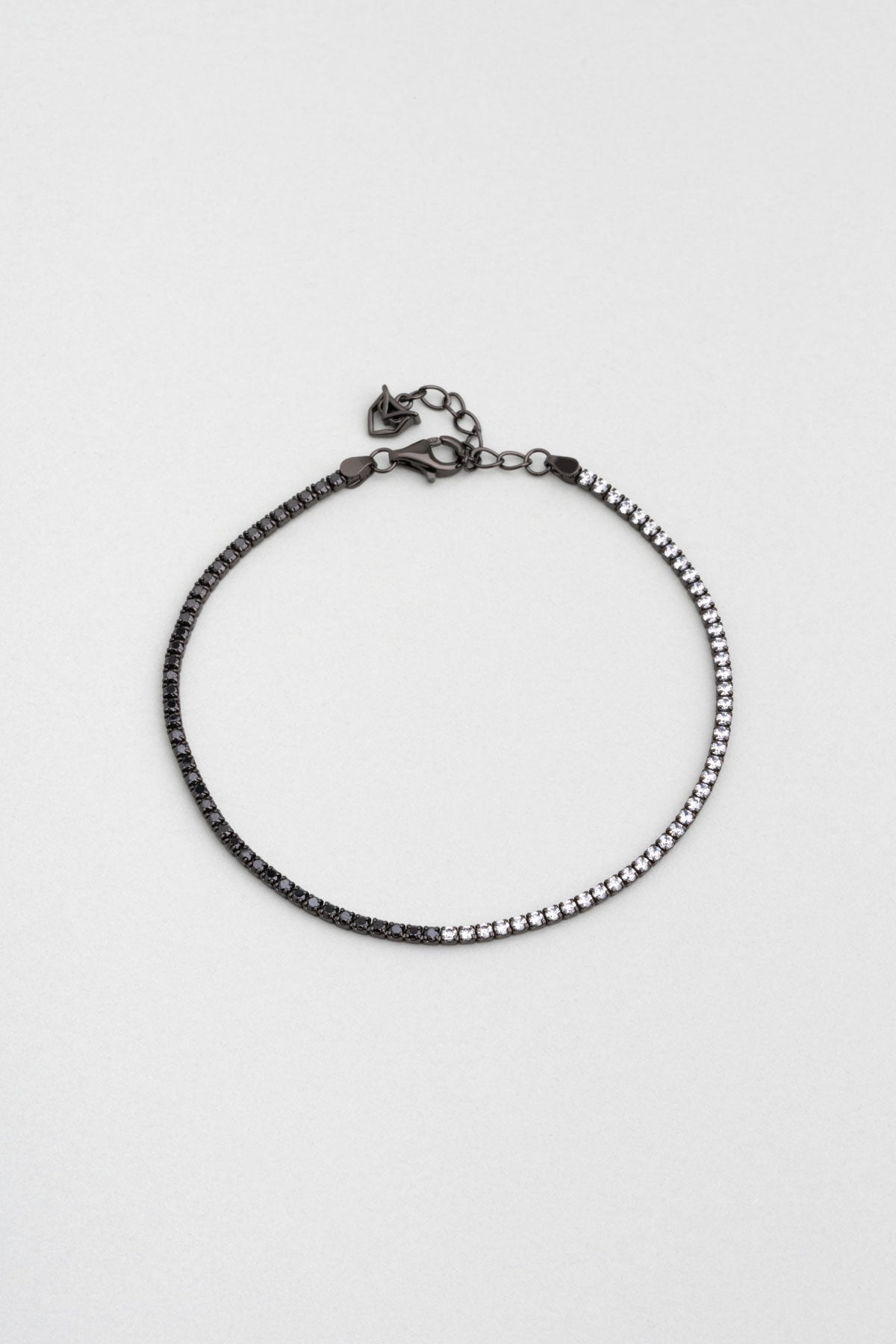Siyah Ve Beyaz Taşlı Rodyum Kaplama 21 Cm Unisex Gümüş Su Yolu Bileklik 5160881342