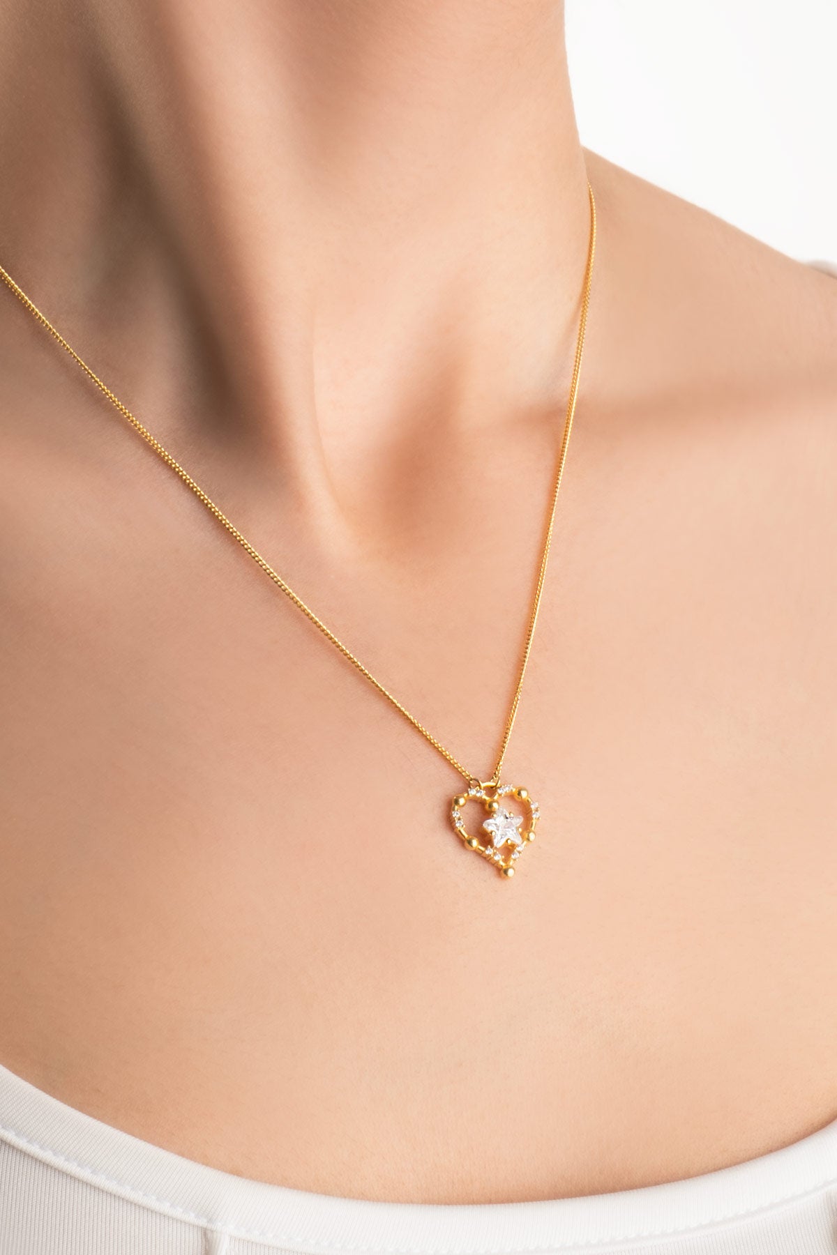 Aşk Yıldızı 18 Ayar Sarı Altın Kaplama 45 Cm Gümüş Kolye 07312170144