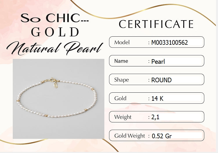 Doğal Inci Taşlı 18 Cm 14 Ayar Sarı Altın Bileklik M003310056244