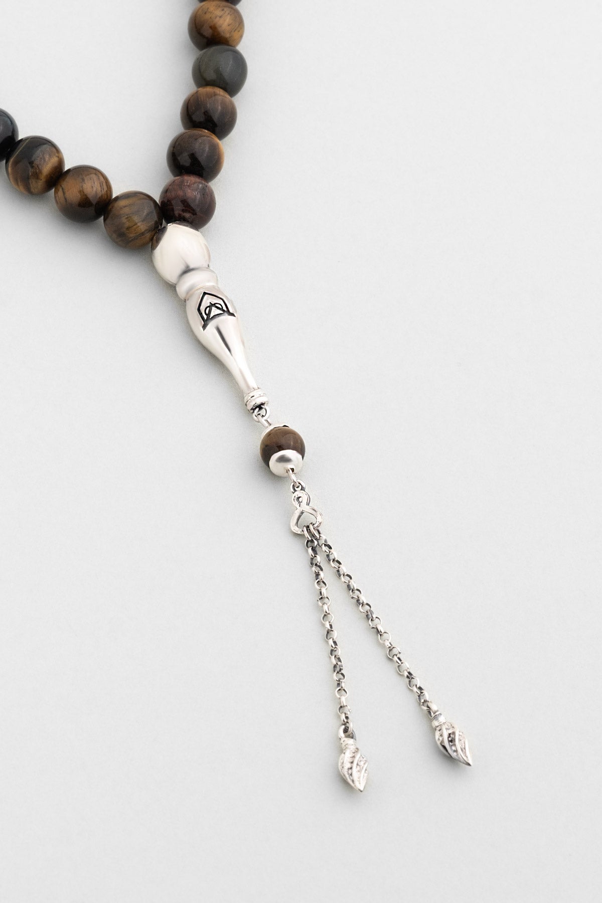 Doğal Kaplan Gözü Taşlı 24 Cm Gümüş Tesbih F57569999