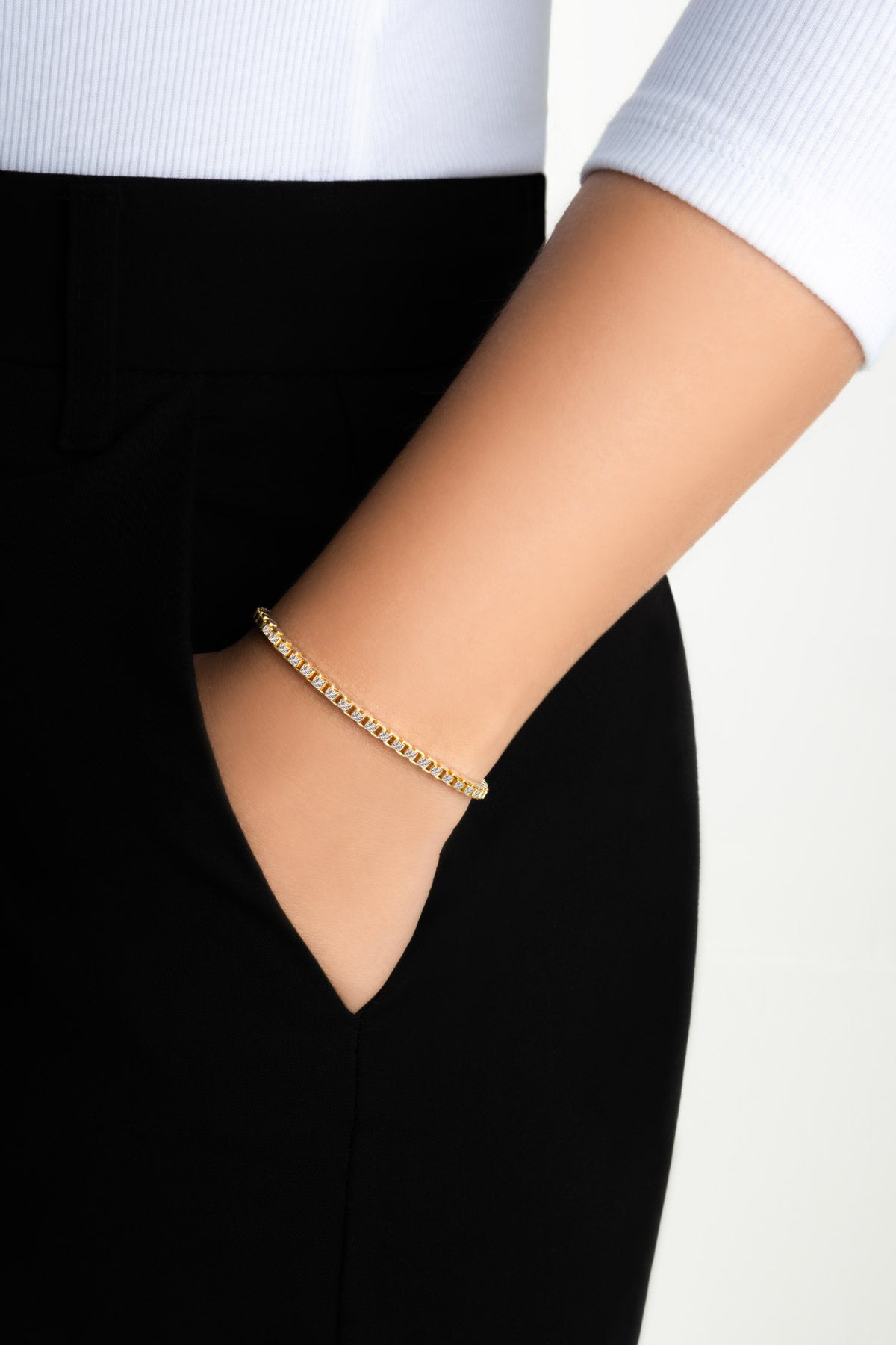 Italyan Brillante 18 Ayar Sarı Altın Kaplama 19 Cm Gümüş Bileklik 5212714499