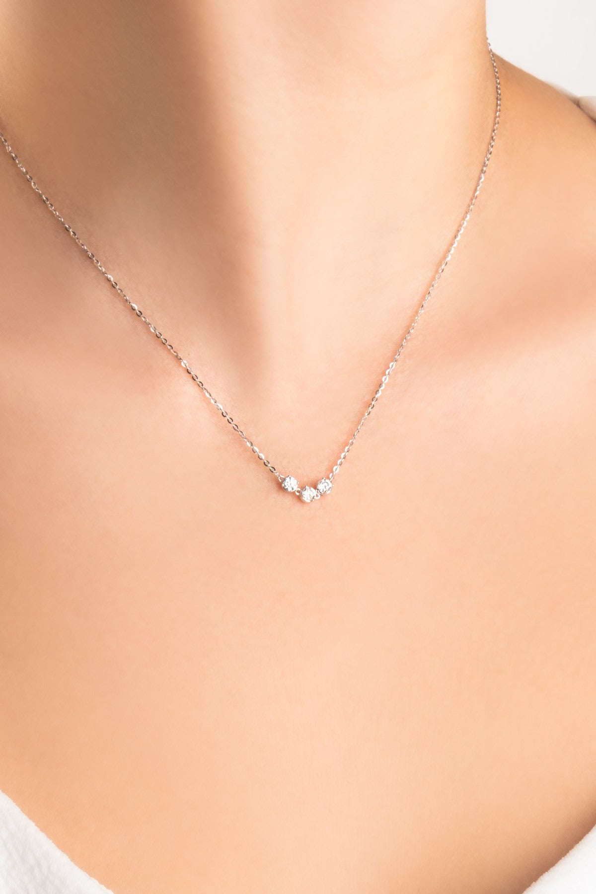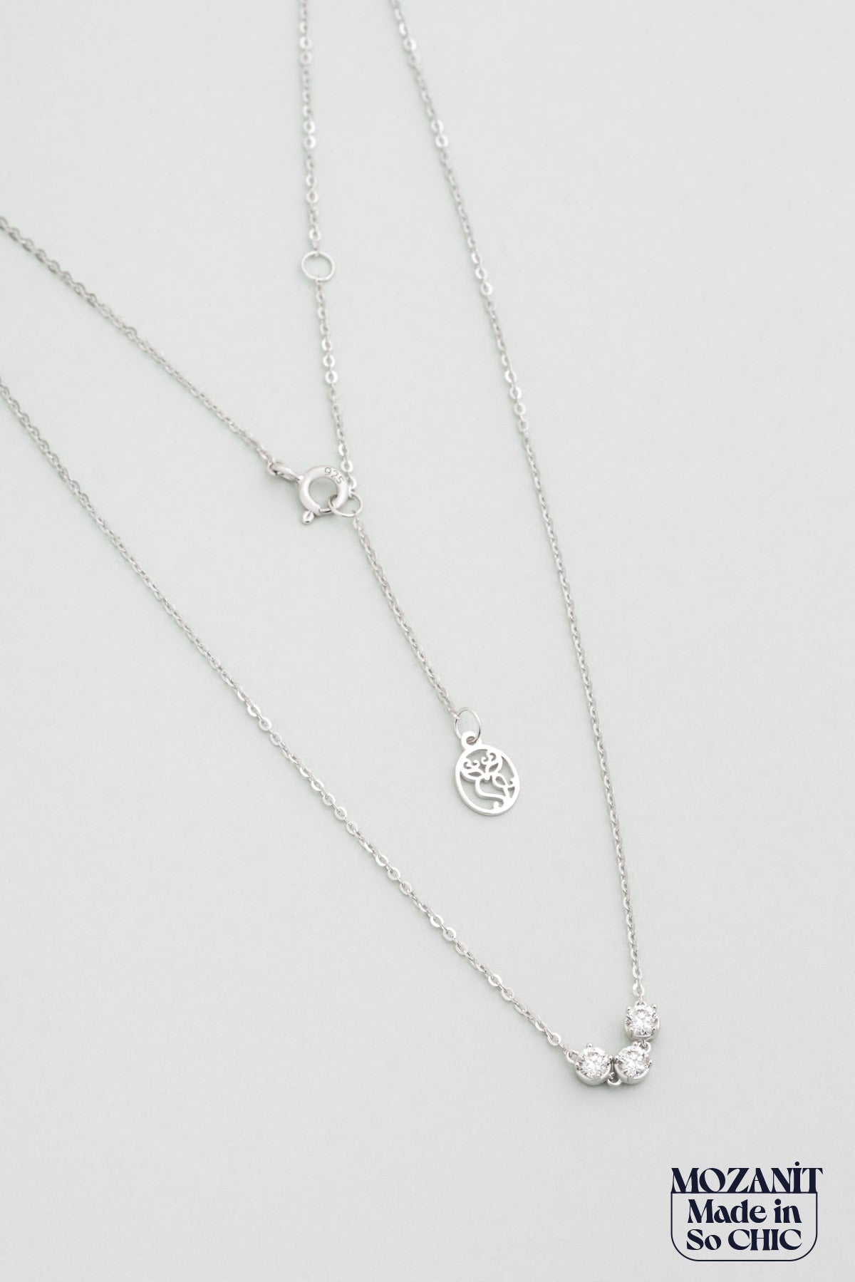 Mozanit Yolculuğu 18 Ayar Beyaz Altın Kaplama 46 Cm Gümüş Kolye 5199430199