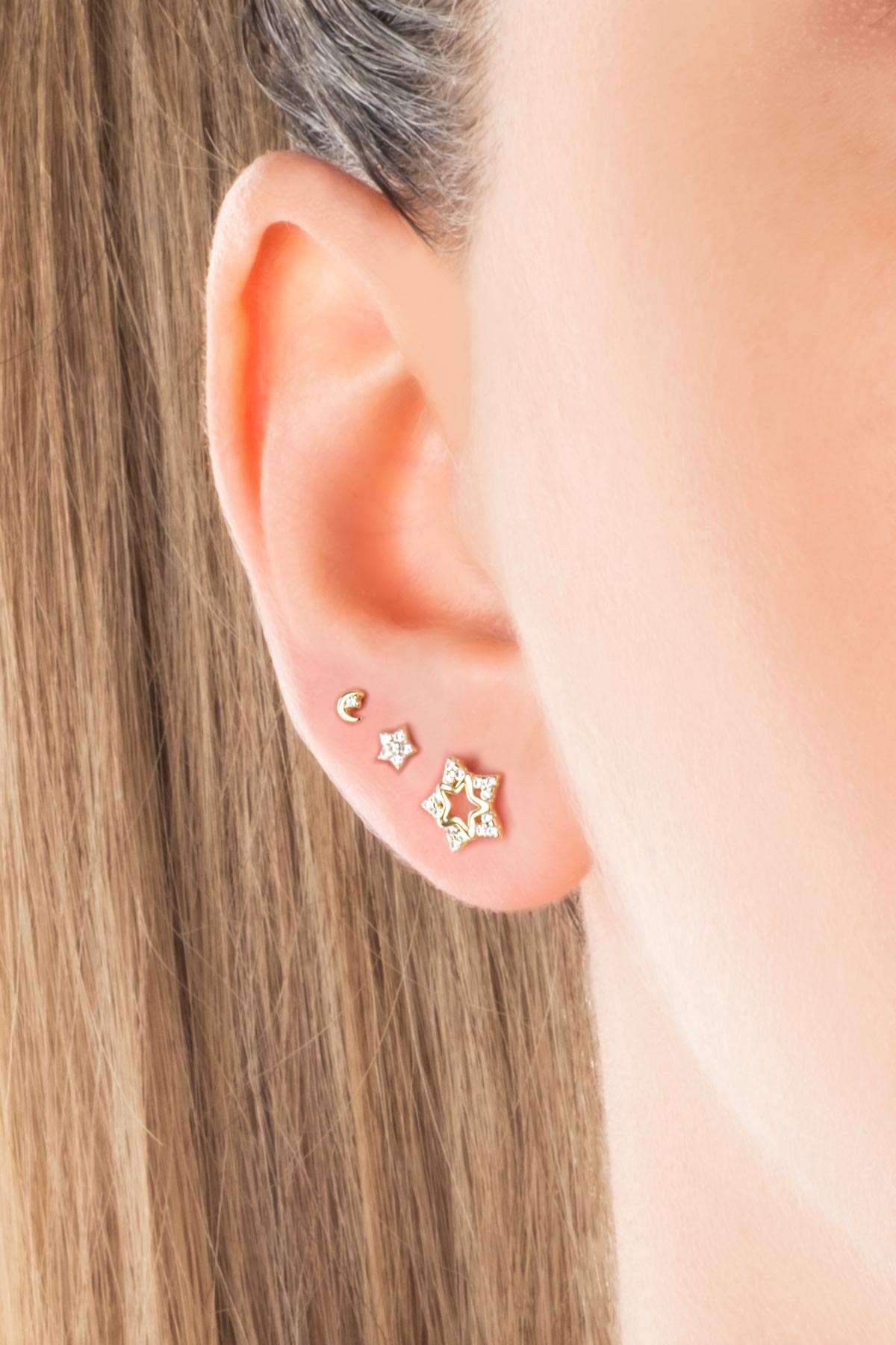 Şans Yıldızları 18 Ayar Sarı Altın Kaplama Gümüş Çoklu Küpe 5175130144