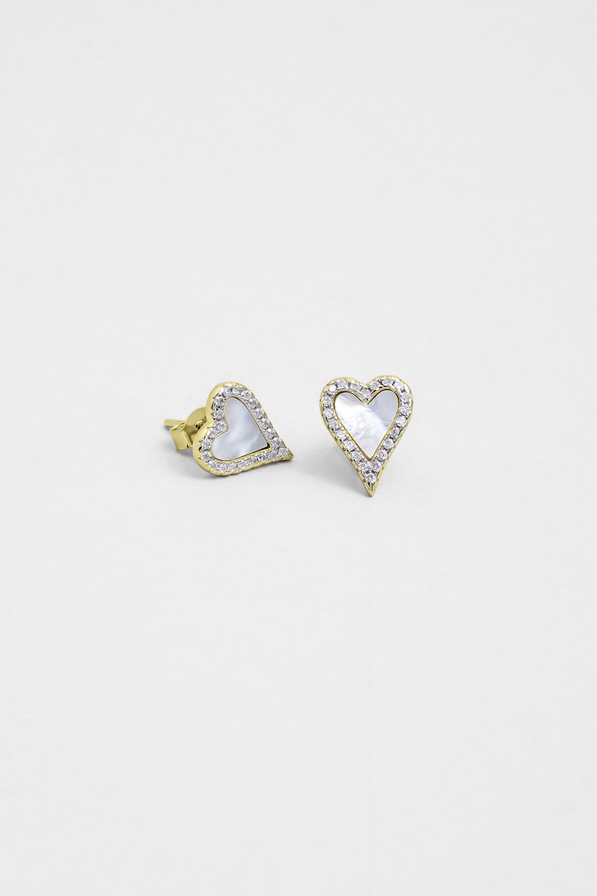 Sedef Kalbi 18 Ayar Sarı Altın Kaplama Gümüş Kalp Küpe 5165294644