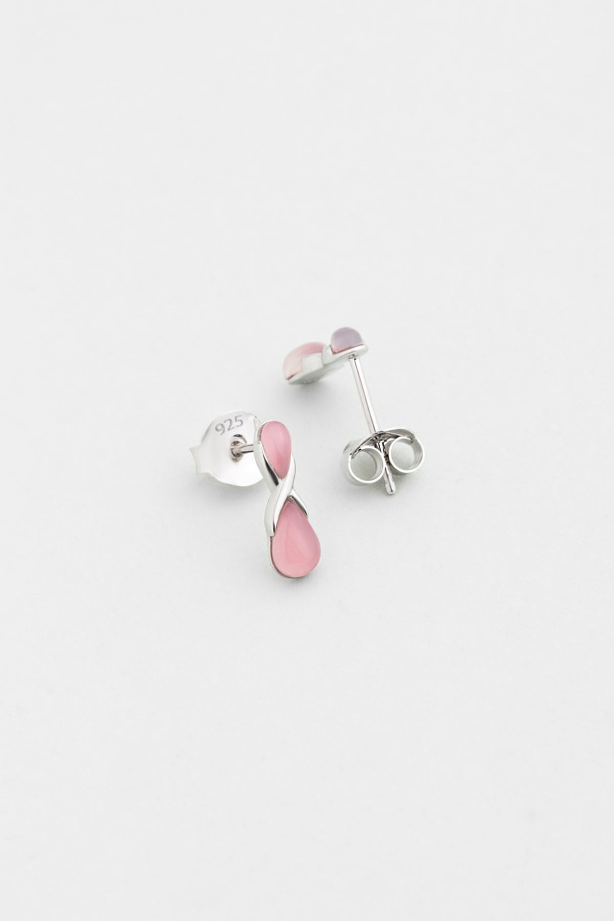 Sonsuz Pembe Kalsedon 18 Ayar Beyaz Altın Kaplama Gümüş Küpe 07314340399