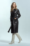Stella Kadın Siyah Regular Deri Trençkot