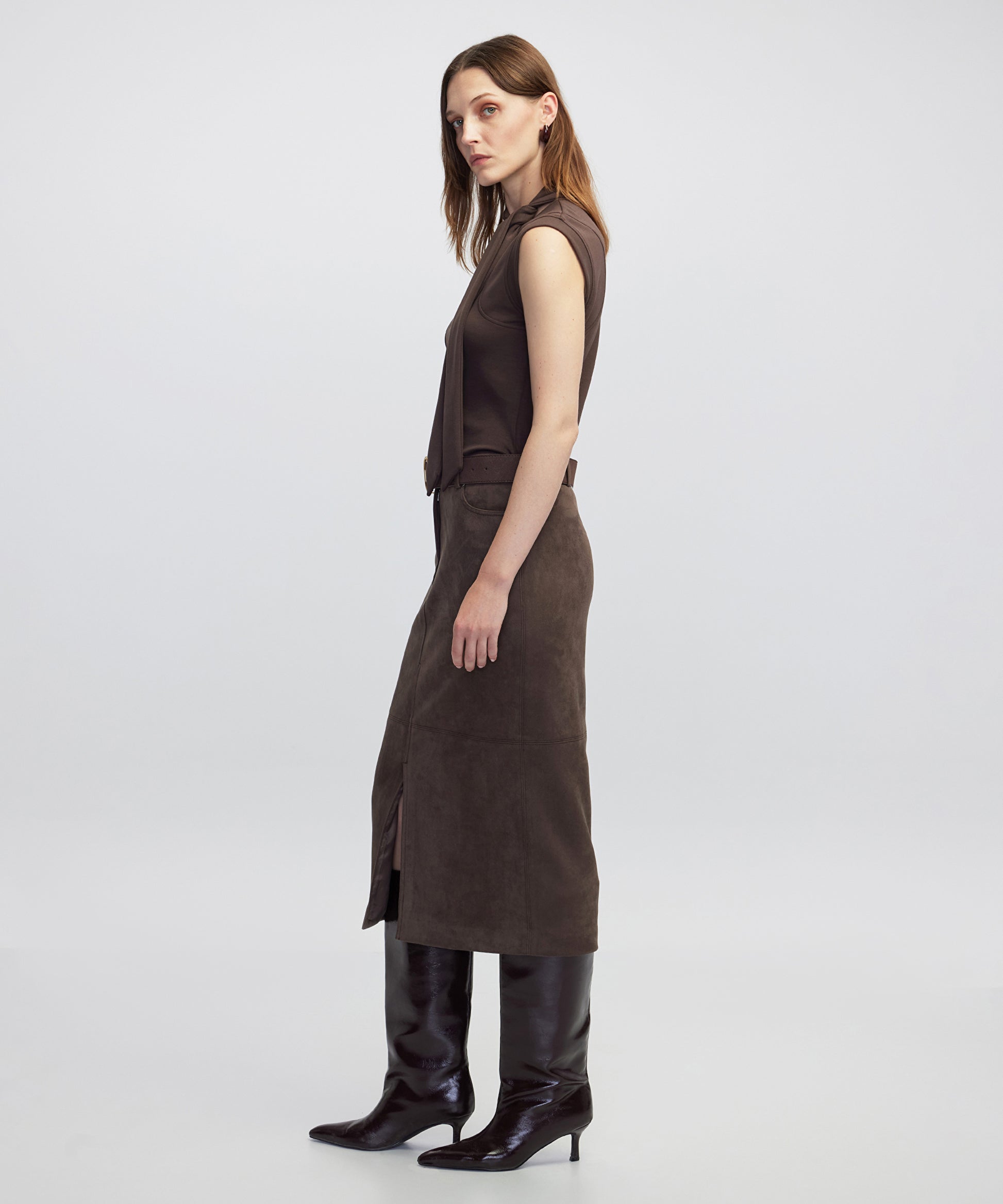 Kahverengi Süet görünümlü midi etek IW6250004100074 ile tarzınızı tamamlayacaksınız. IPEKYOL tarzına sahip olmak için hemen tıklayın!