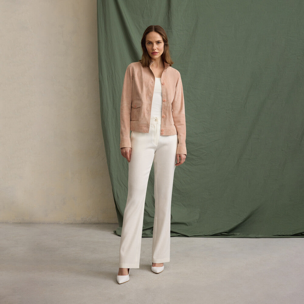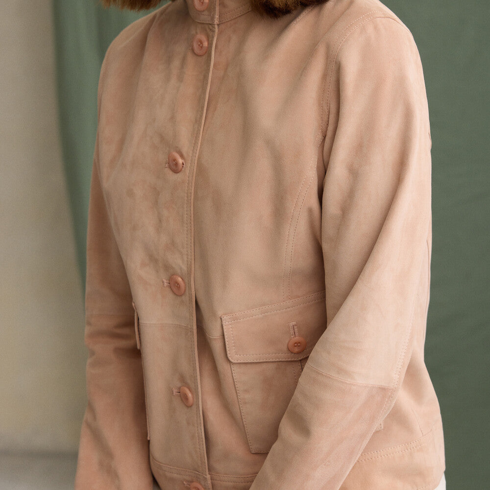 Süet Pembe Deri Ceket