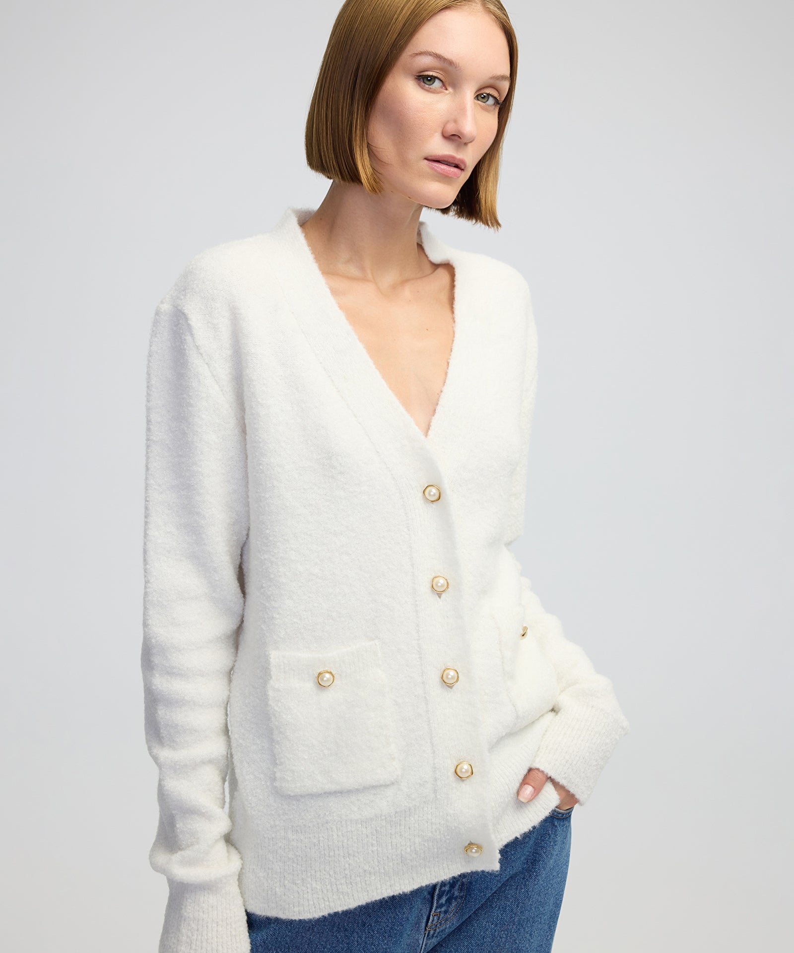 Ekru Suni inci düğmeli hırka IW6240050299018 ile tarzınızı tamamlayacaksınız. IPEKYOL tarzına sahip olmak için hemen tıklayın!