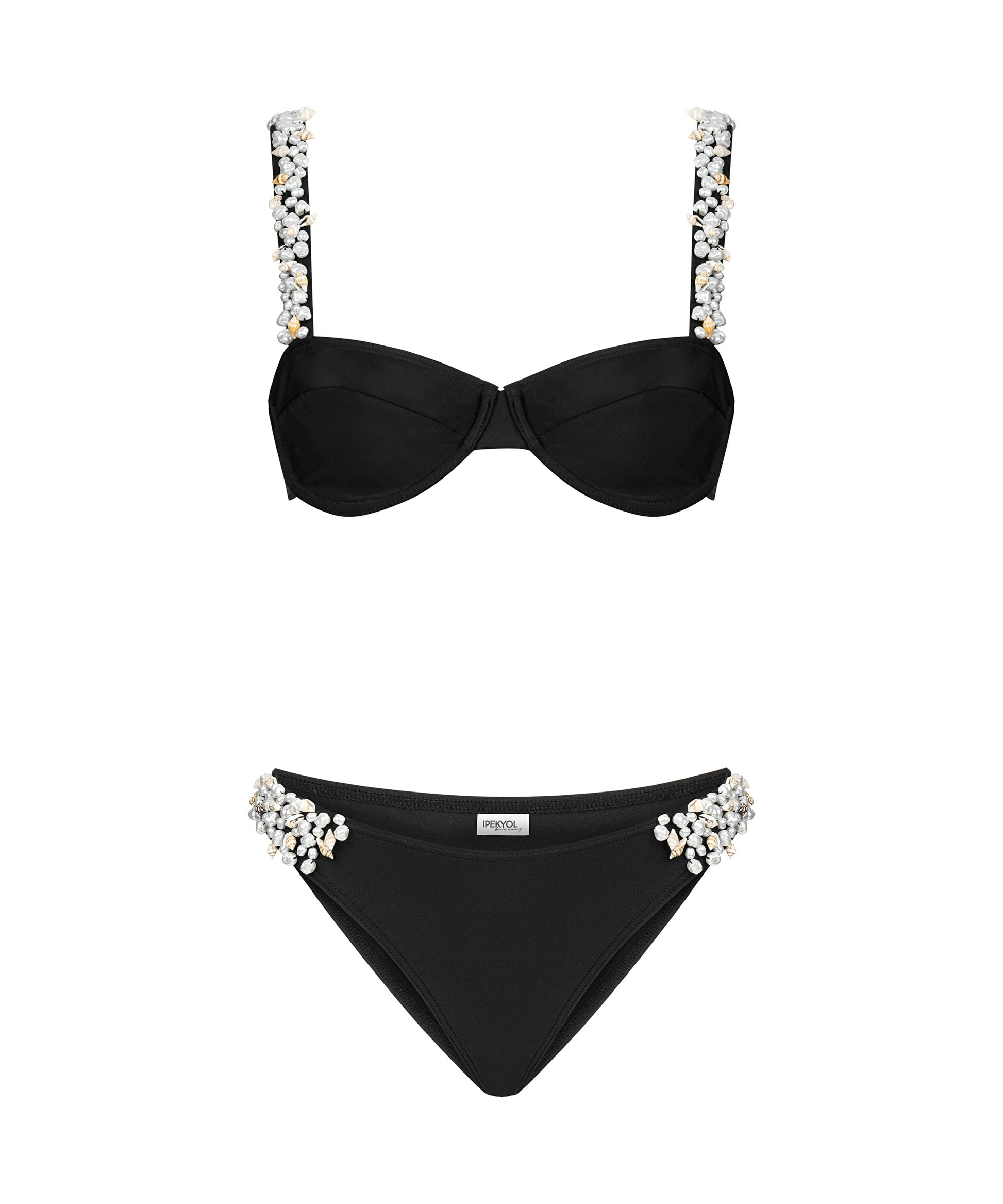 Siyah Suni inci ve strass taş işlemeli bikini seti IS1250038024001 ile tarzınızı tamamlayacaksınız. IPEKYOL tarzına sahip olmak için hemen tıklayın!