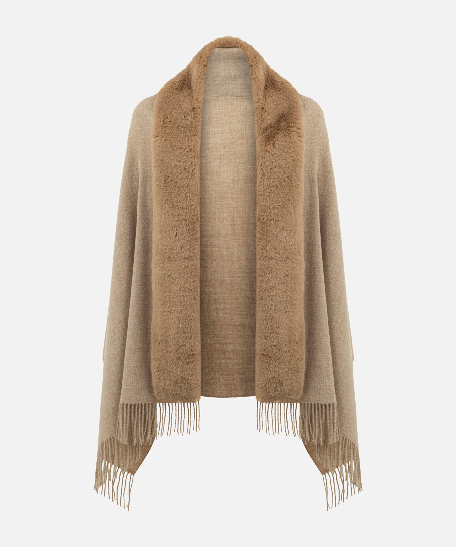Bej Suni kürklü püsküllü panço IW6250079004023 ile tarzınızı tamamlayacaksınız. IPEKYOL tarzına sahip olmak için hemen tıklayın!
