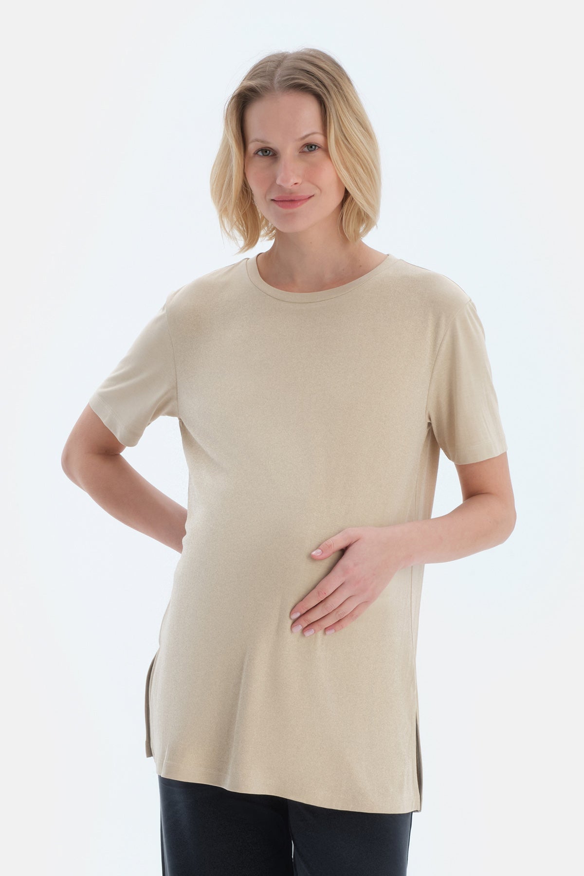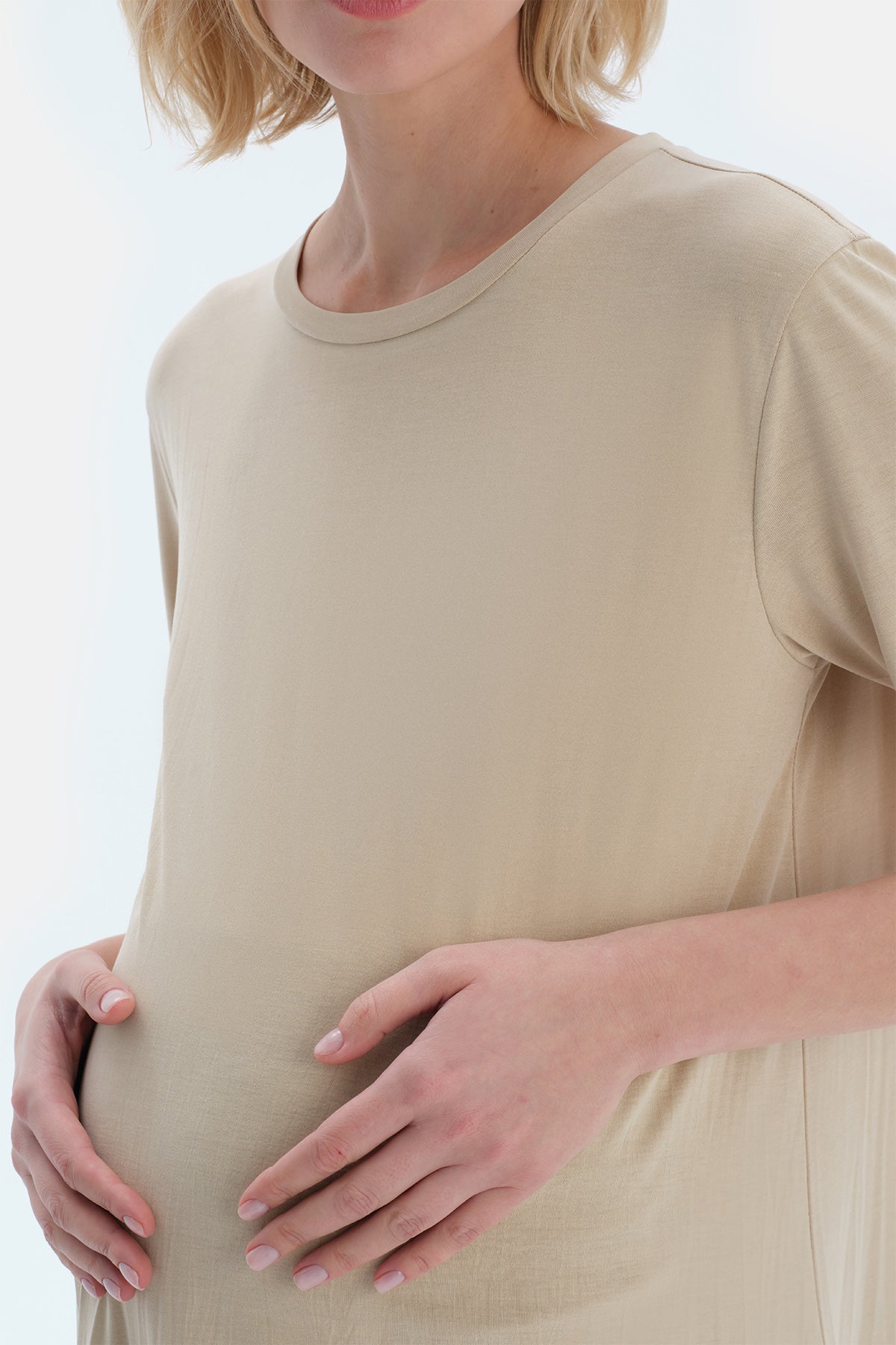 Sütlü Kahve Bisiklet Yaka Modal Hamile Tişört