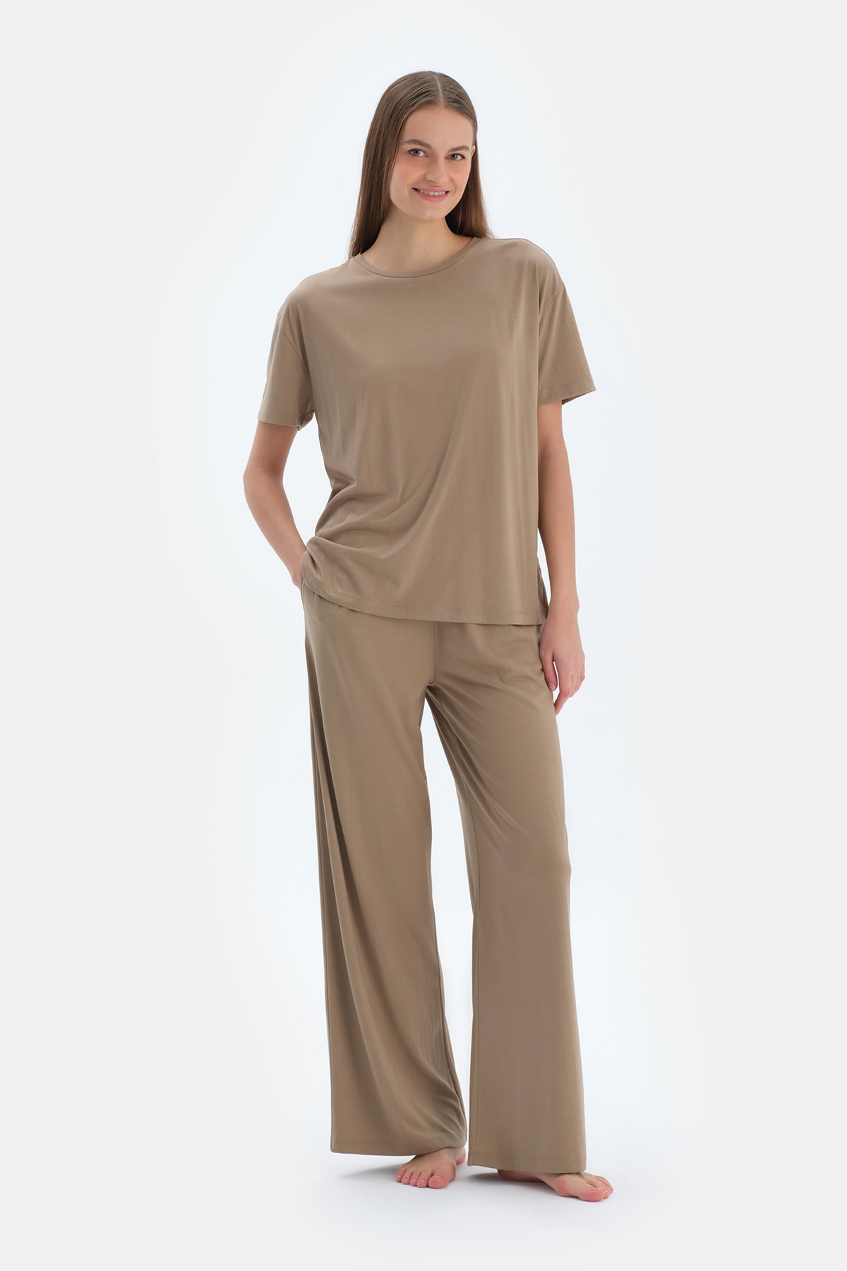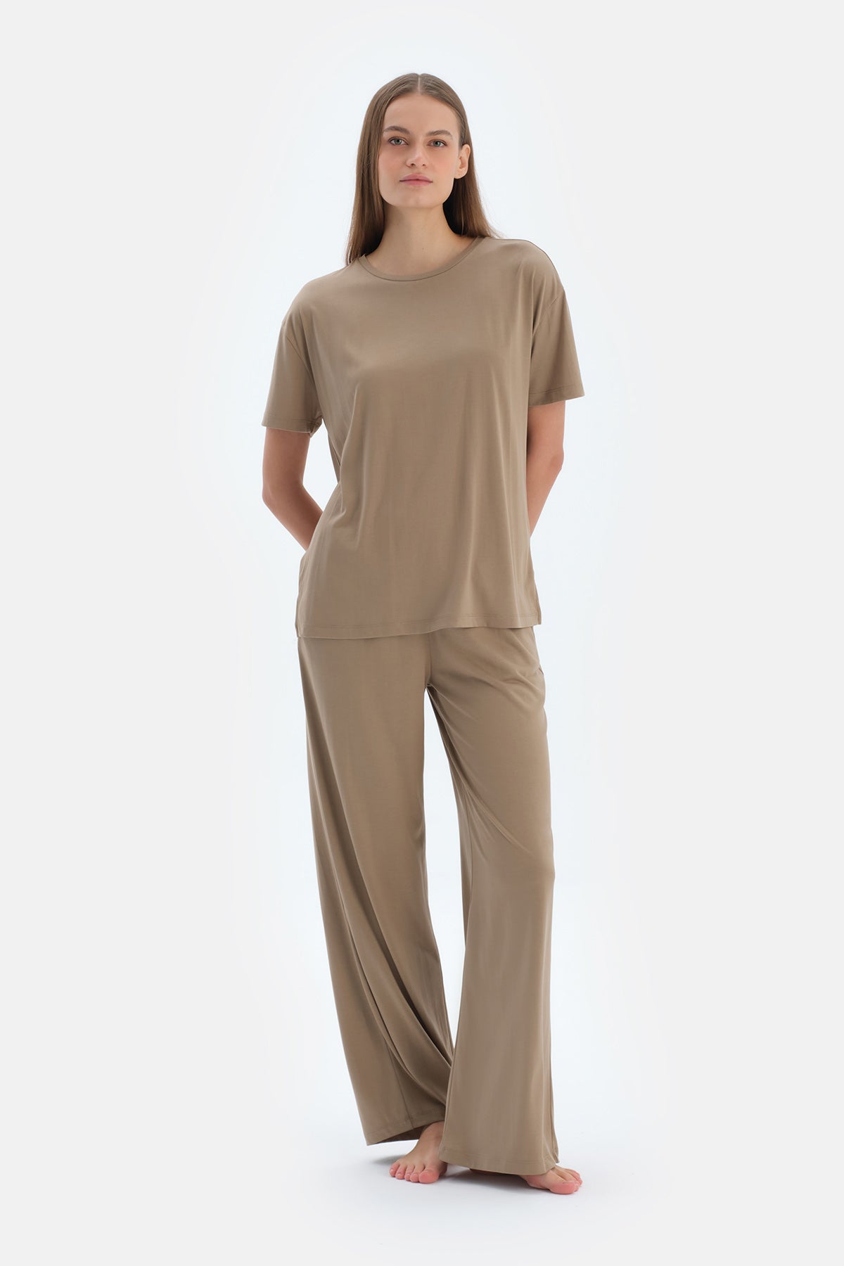 Sütlü Kahve Cepli Basıc Modal Pantolon