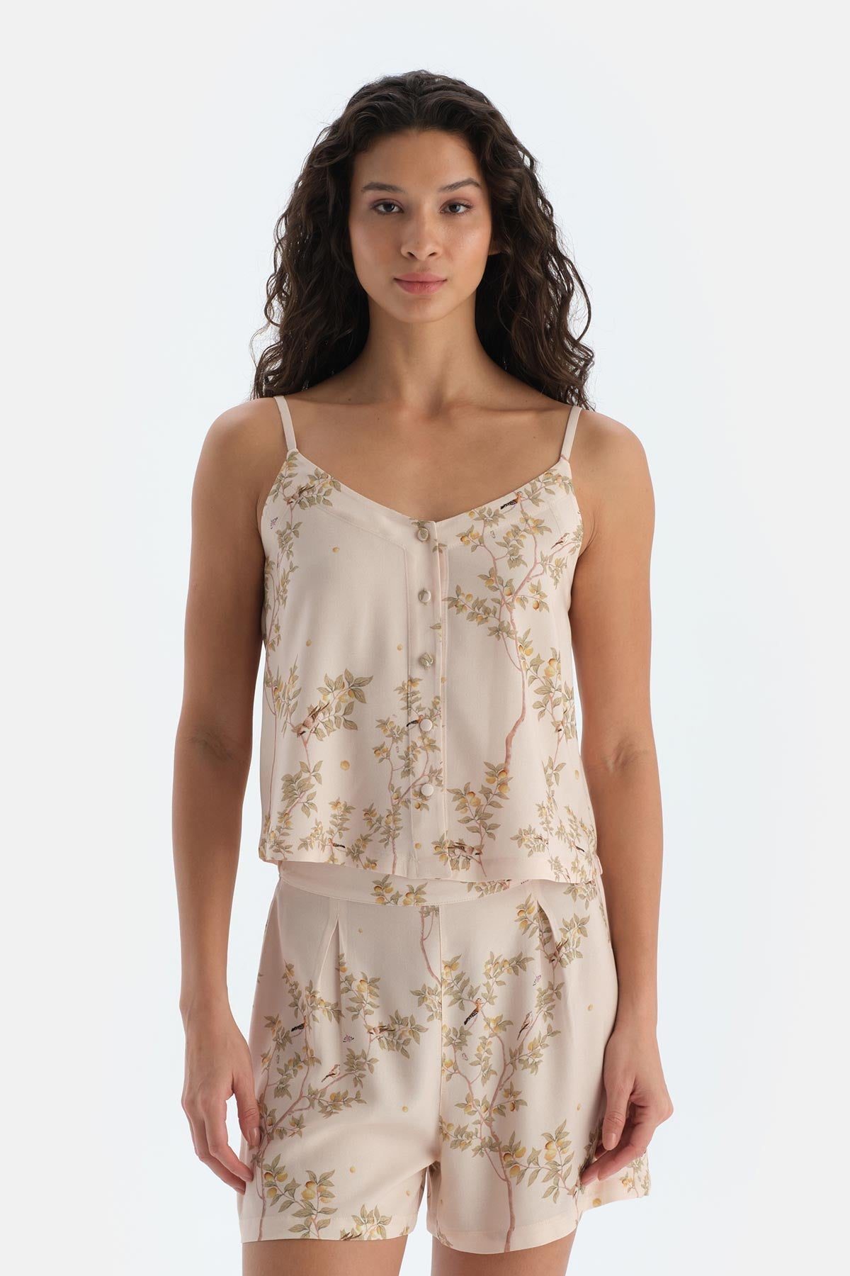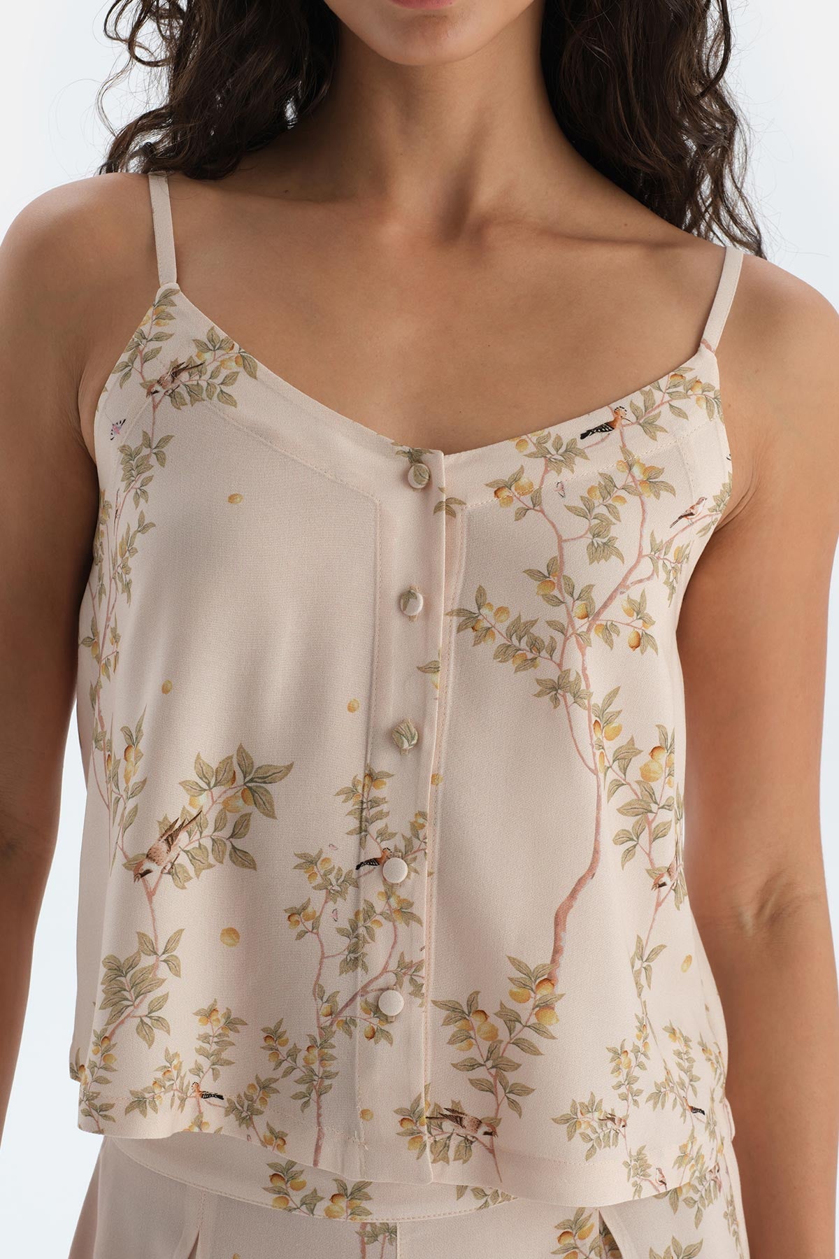 Taş Çiçek Baskılı Viskon Dokuma Camısole
