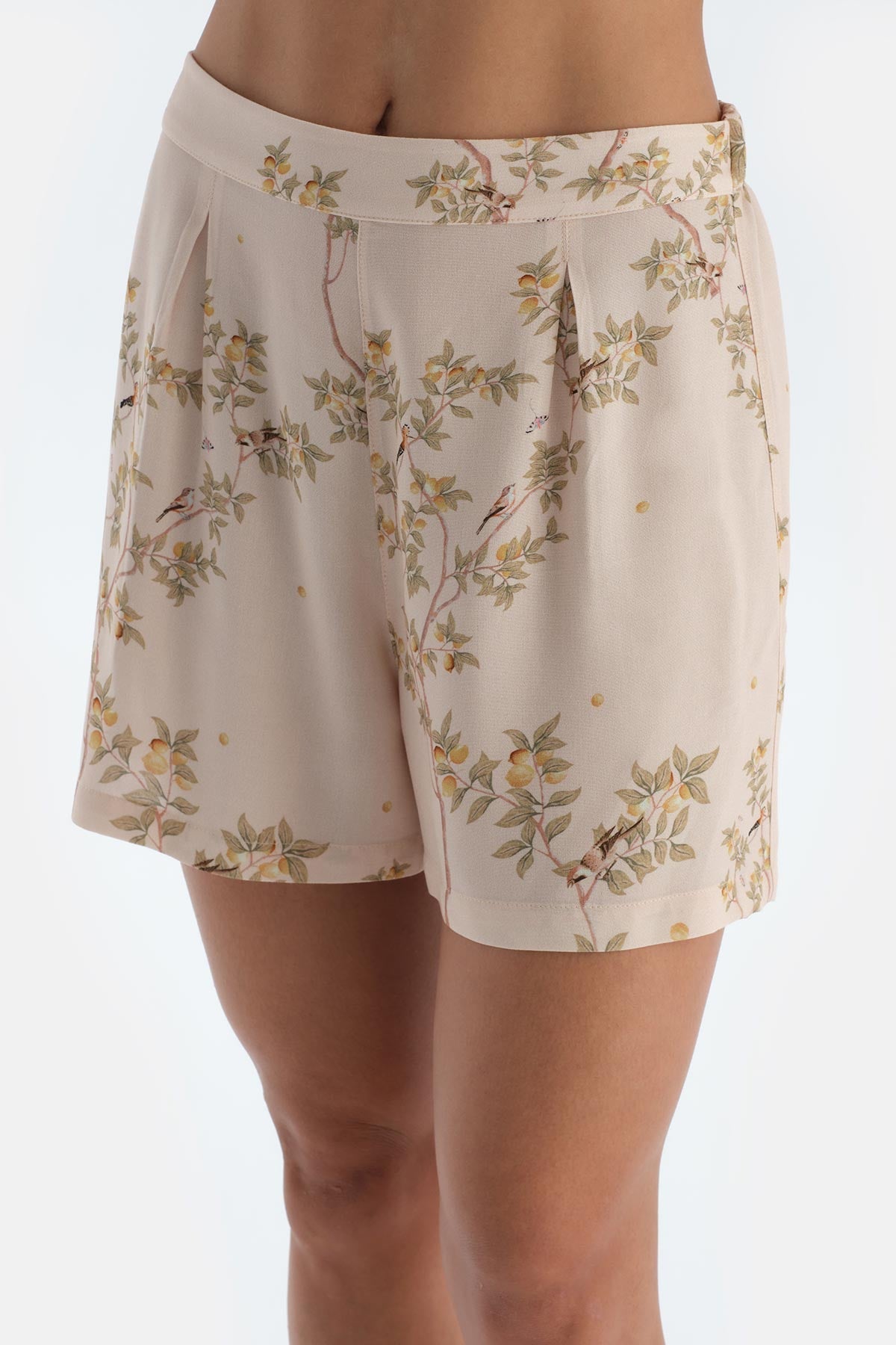 Taş Çiçek Baskılı Viskon Dokuma Şort