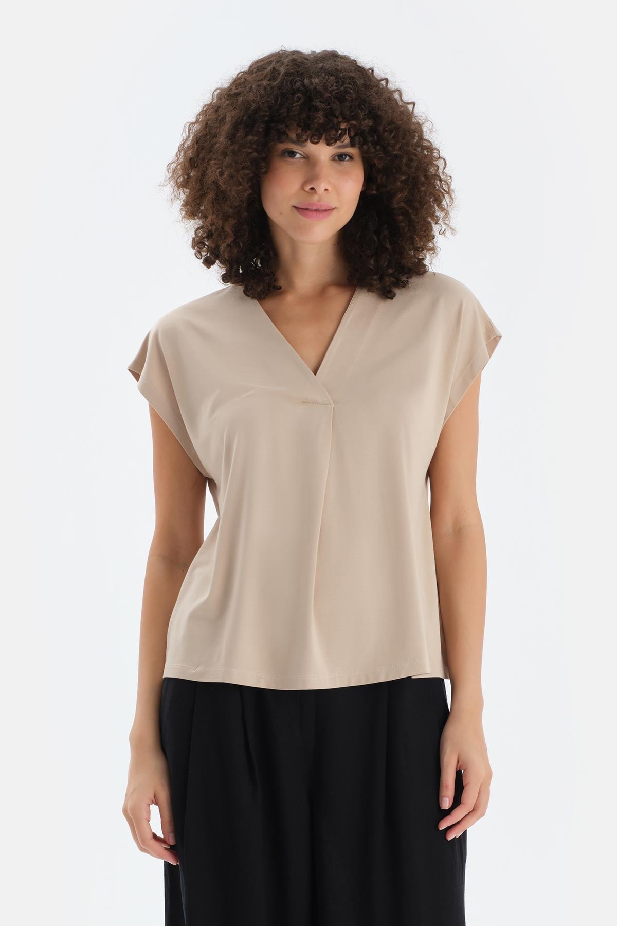 Taş V Yaka Pilikaşeli Viskon Tişört 25SW11420BB_372 şimdi Dagi'de. Kaliteli, konforlu ve özel fiyatlarla sizleri bekliyor.