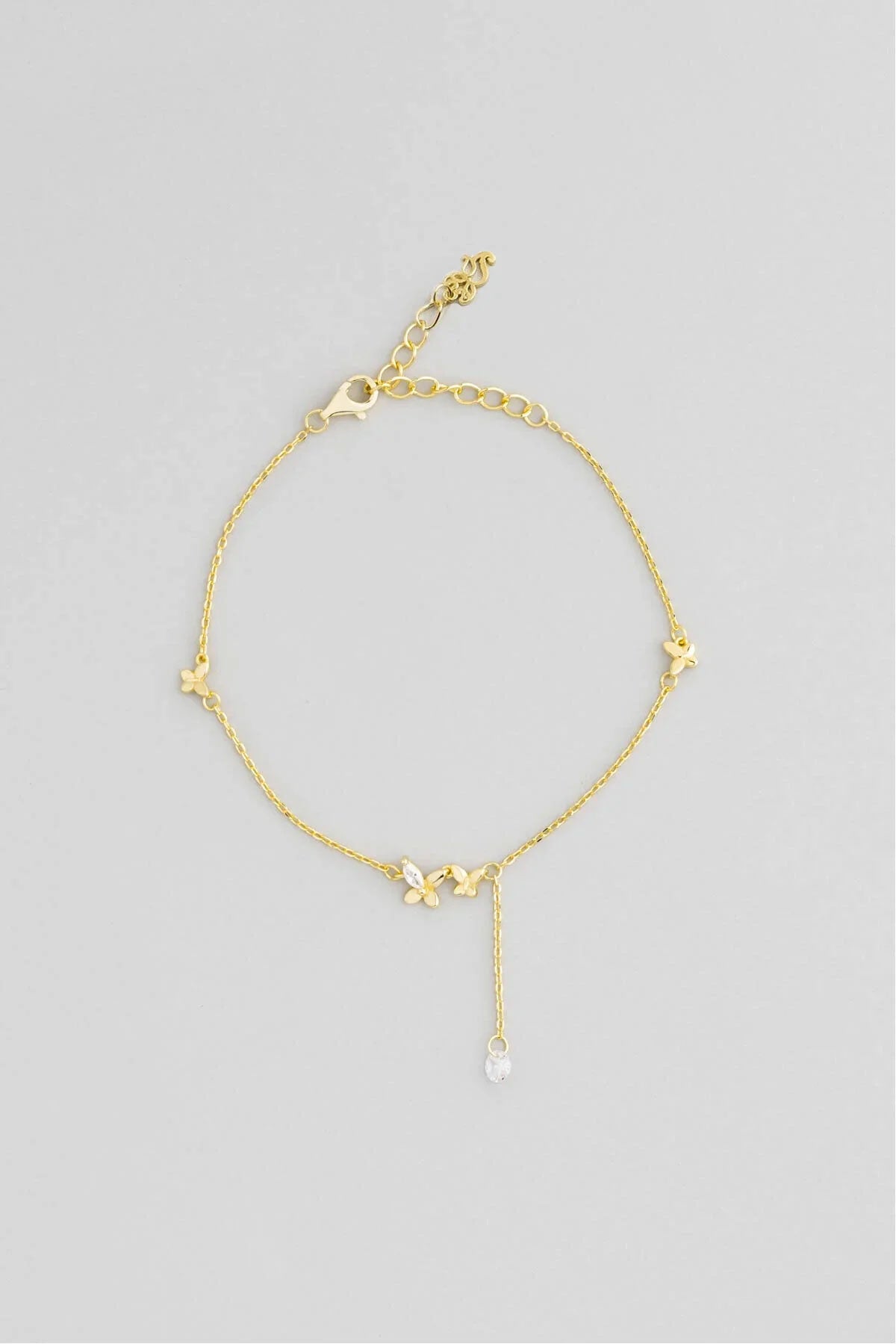 Taşlı Çiçek 18 Ayar Sarı Altın Kaplama 20 Cm Gümüş Minimal Bileklik 5139070144