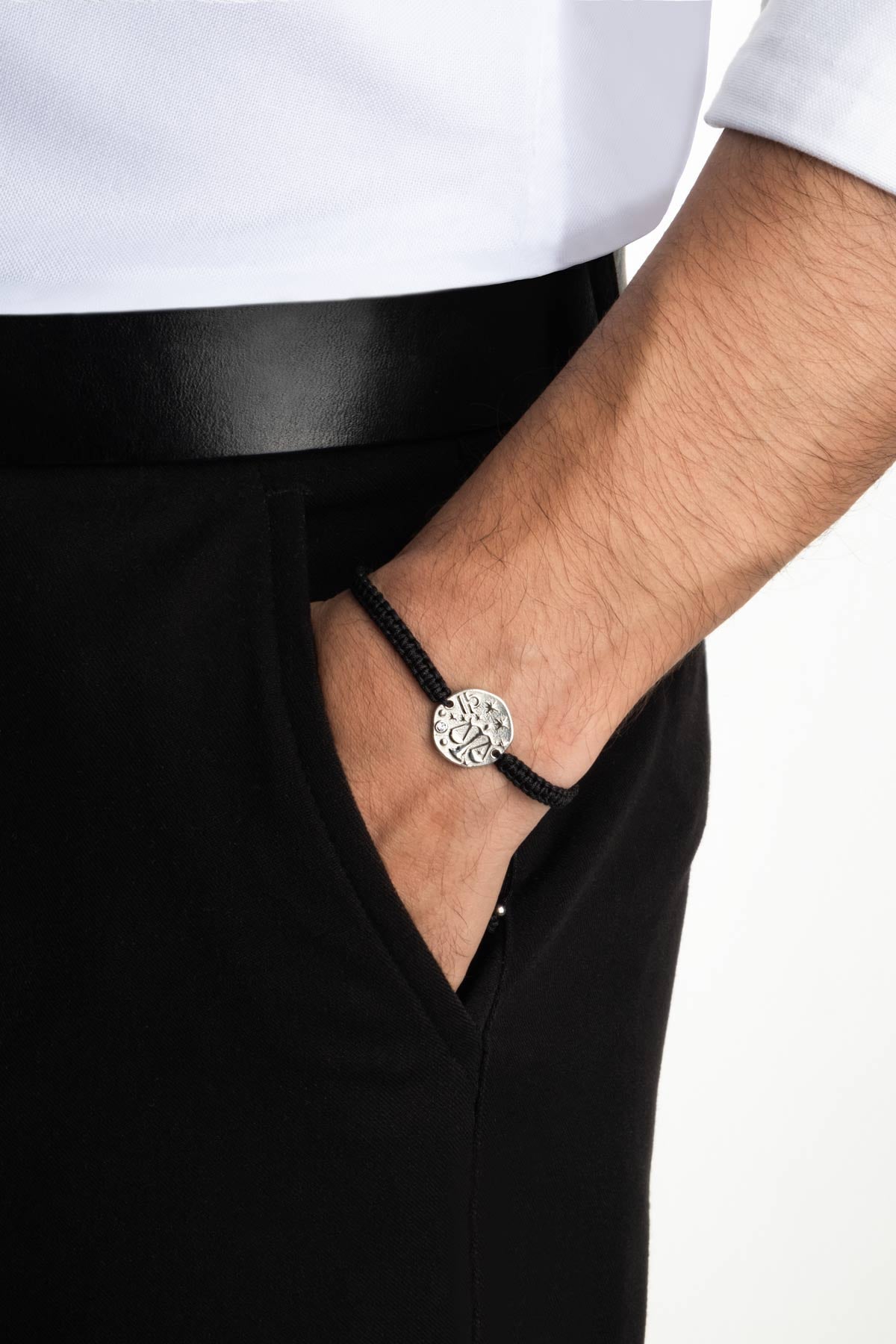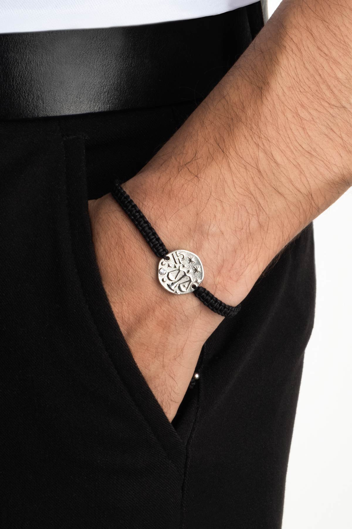 Terazi Burcu 18 Ayar Beyaz Altın Kaplama Ayarlanabilir Erkek Gümüş Bileklik 07310069399