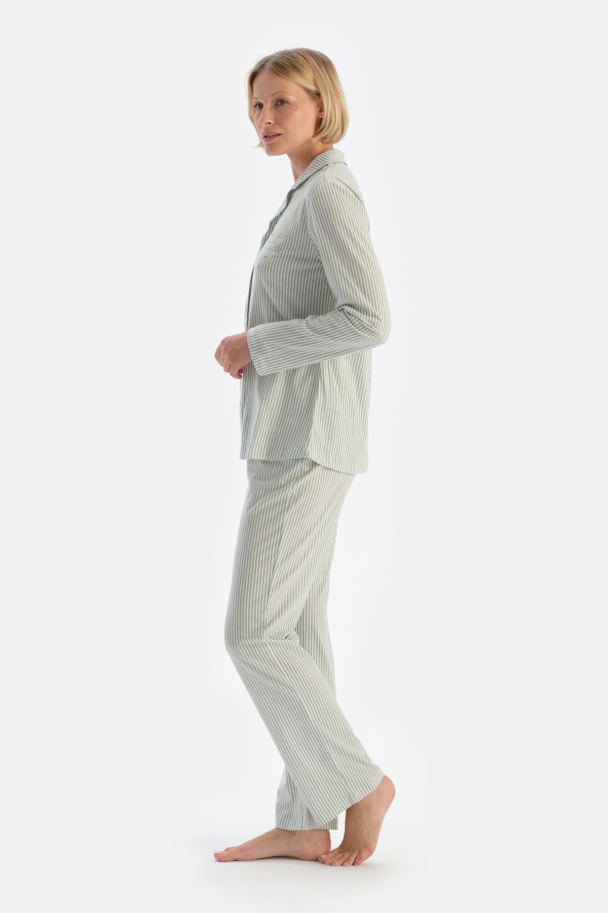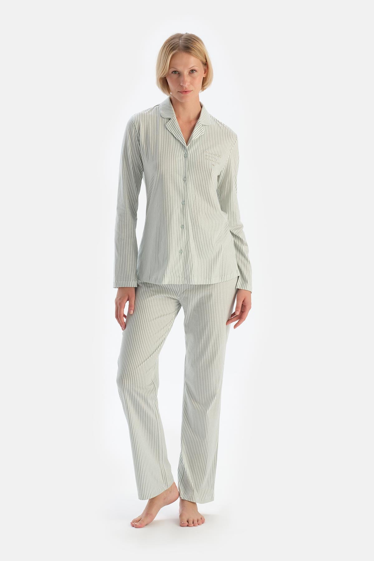 Turkuaz Çizgili Nakış Detaylı Pamuklu Pijama Takımı 24AW17679BB_374 şimdi Dagi'de. Kaliteli, konforlu ve özel fiyatlarla sizleri bekliyor.