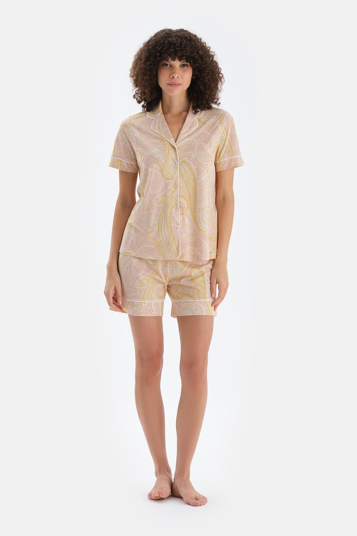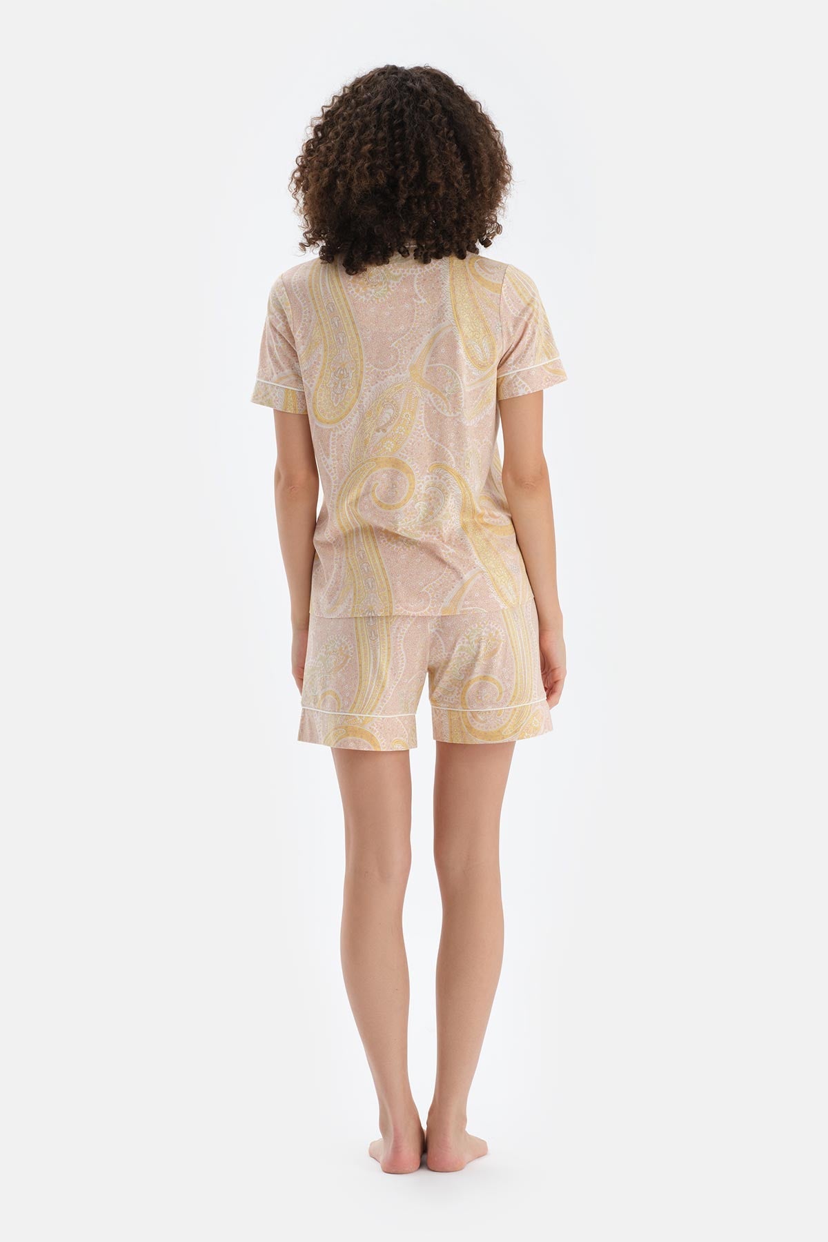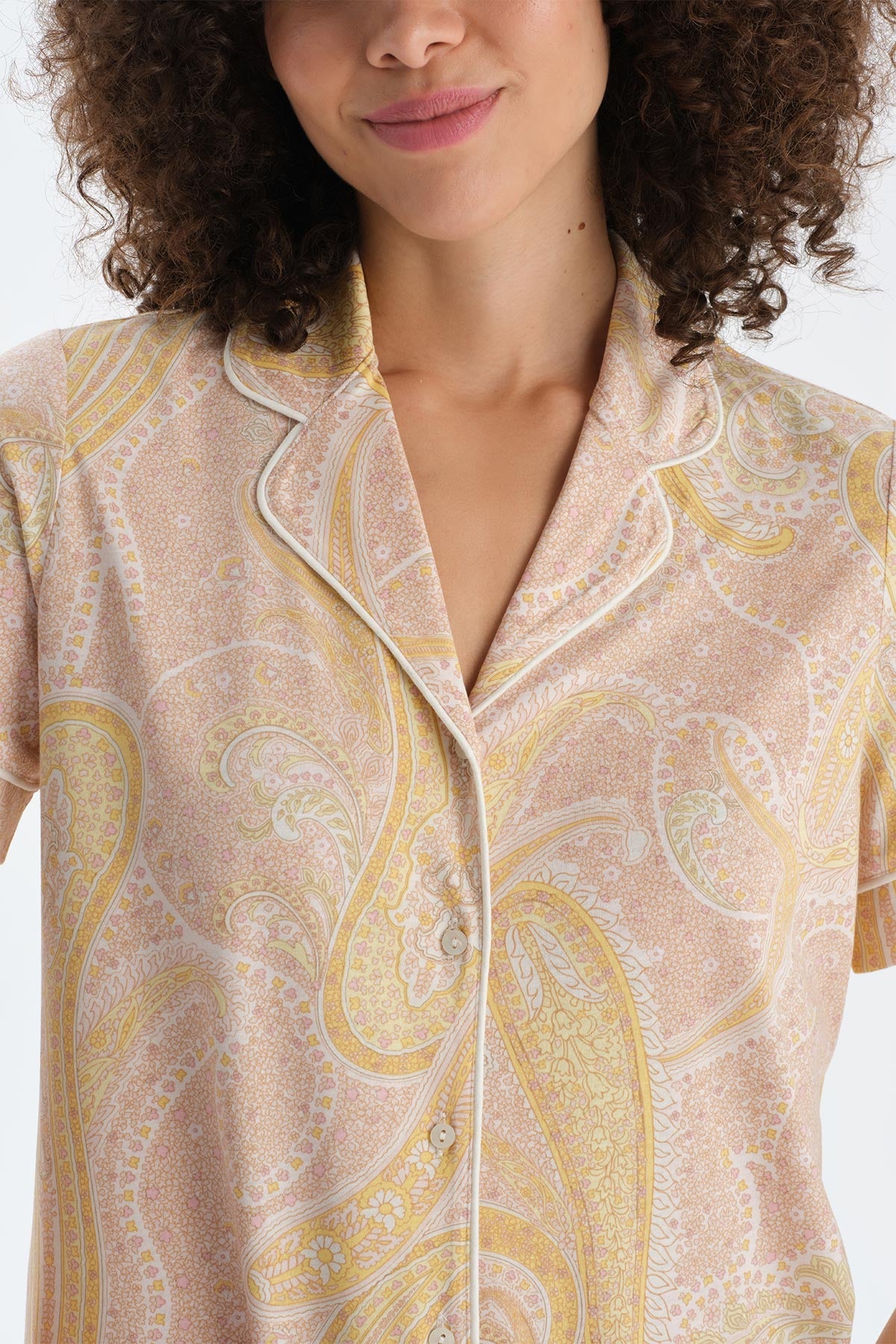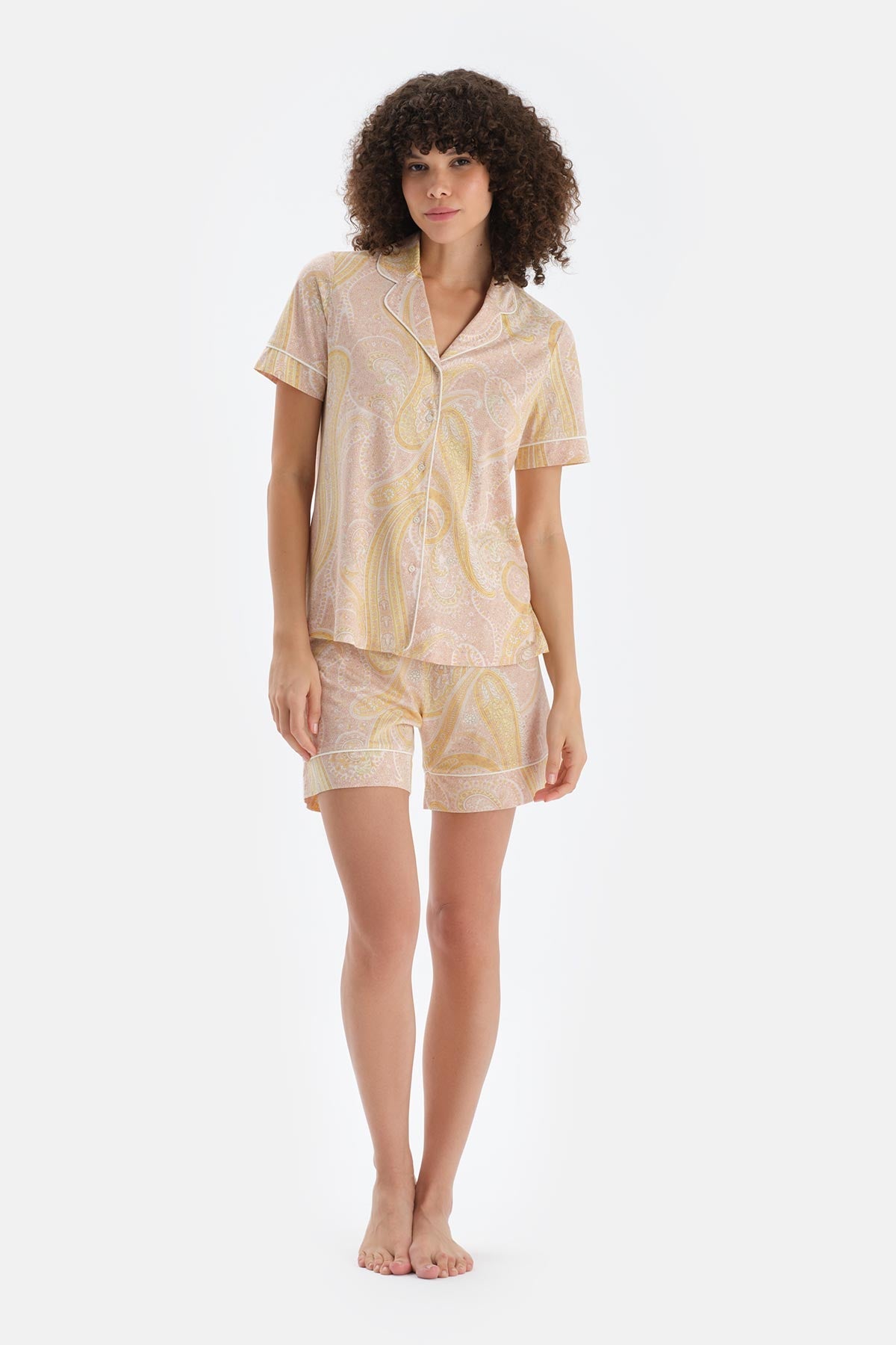 Turuncu Şal Desenli Penye Modal Gömlek Şort Pijama Takımı 25SW17835BB_375 şimdi Dagi'de. Kaliteli, konforlu ve özel fiyatlarla sizleri bekliyor.