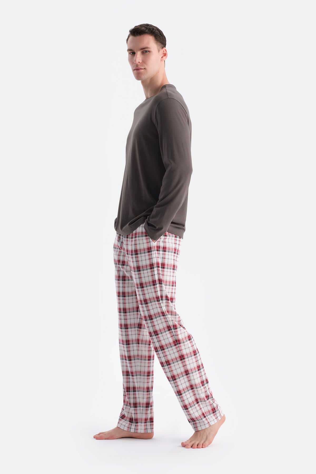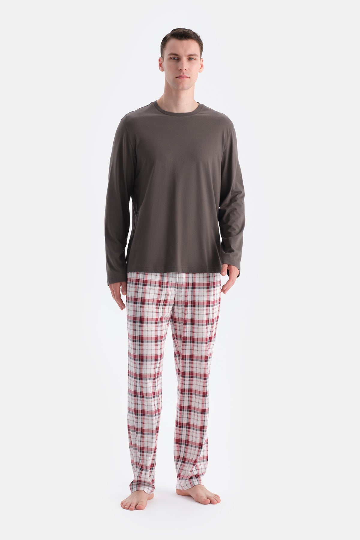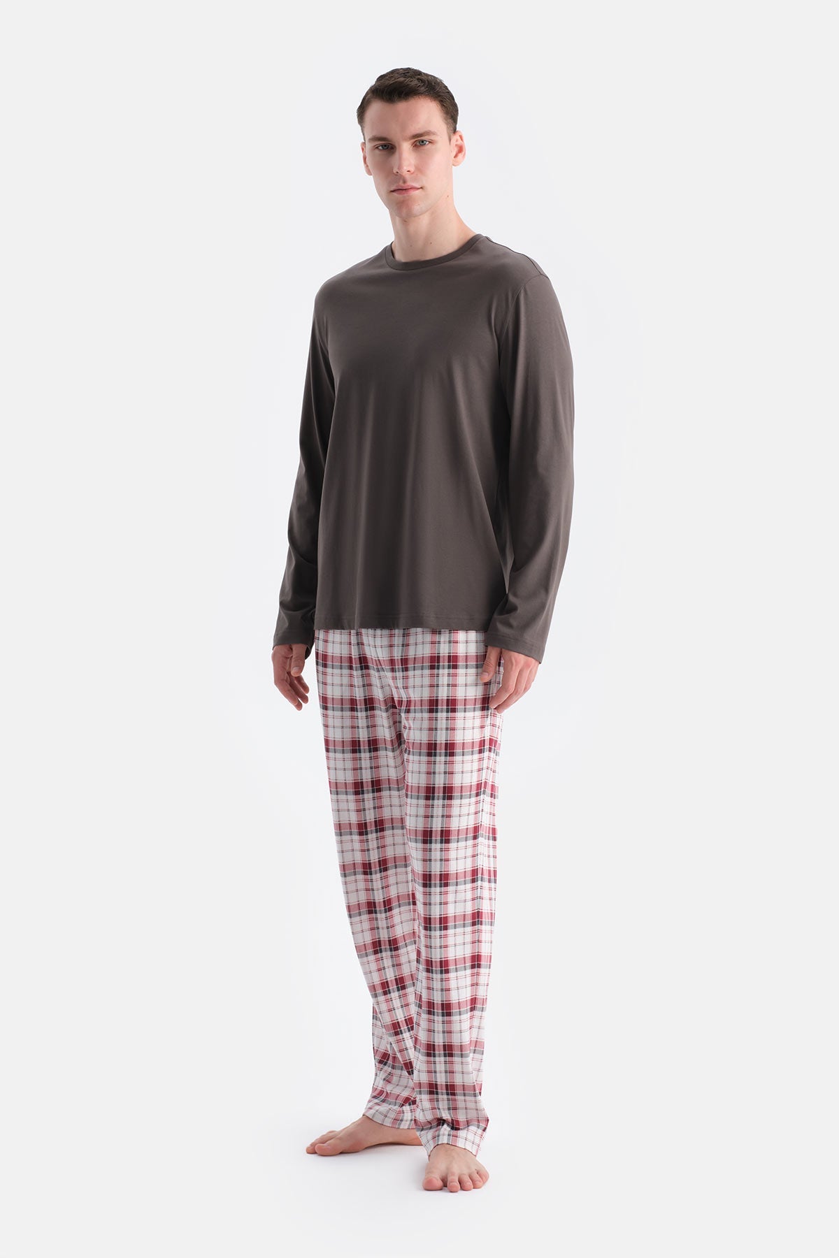 Uzun Kollu Alti Ekoseli Tişört Pantolon Takim