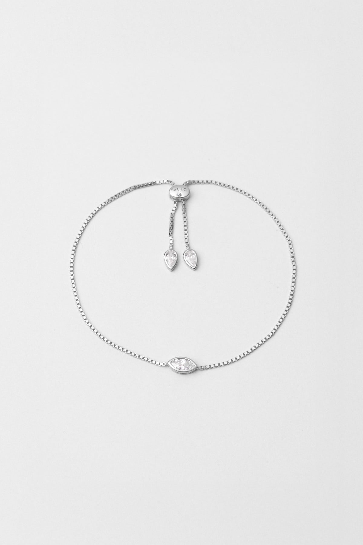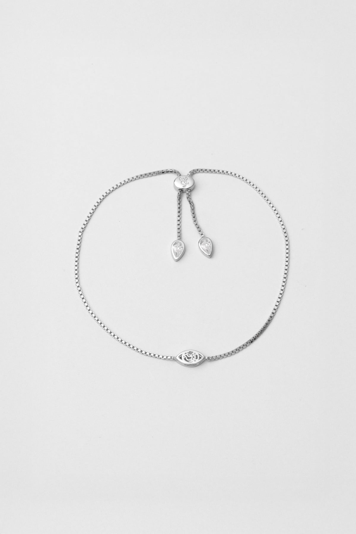 Vera 18 Ayar Beyaz Altın Kaplama Ayarlanabilir Gümüş Bileklik 5203360199