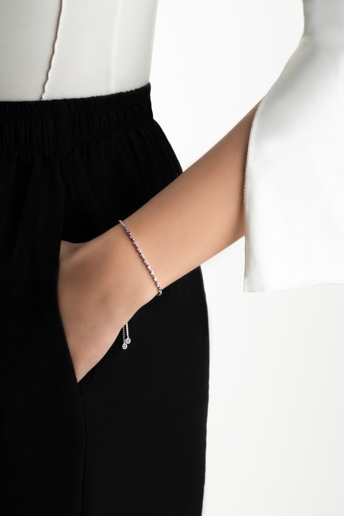 Violet 18 Ayar Beyaz Altın Kaplama Gümüş Ayarlanabilir Bileklik 5178281799