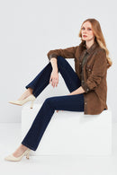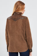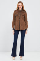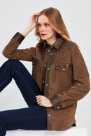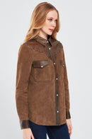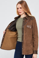 Western Kadın Kahverengi Gömlek Tarzı Süet Deri Ceket