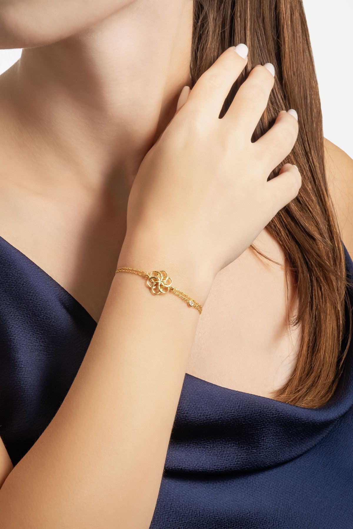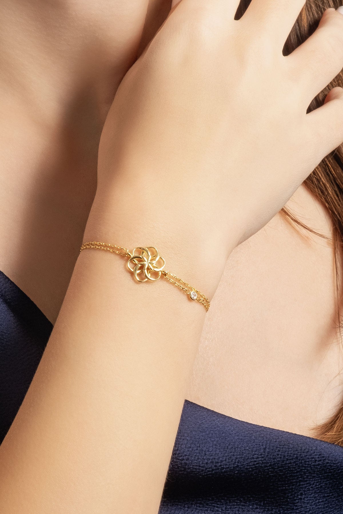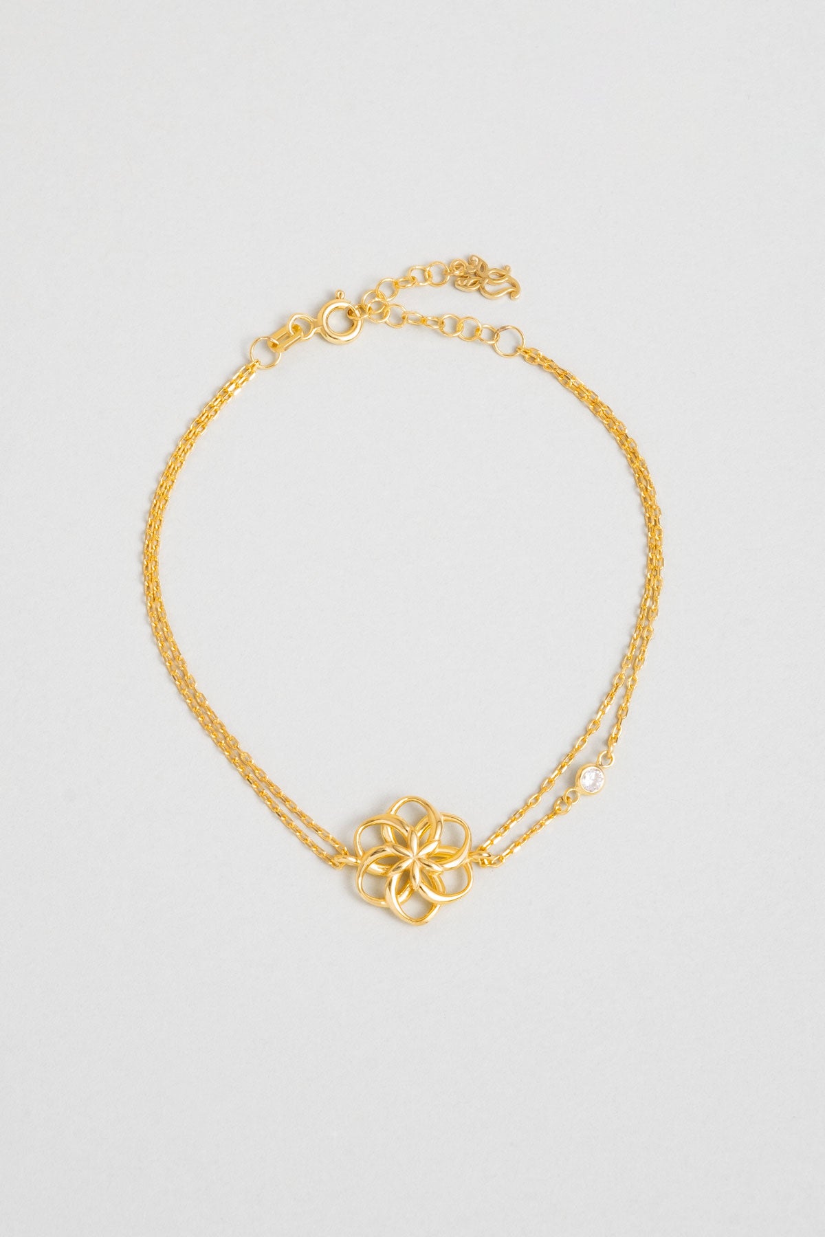 Yaşam Çiçeği 18 Ayar Sarı Altın Kaplama 20 Cm Gümüş Bileklik 1125630144